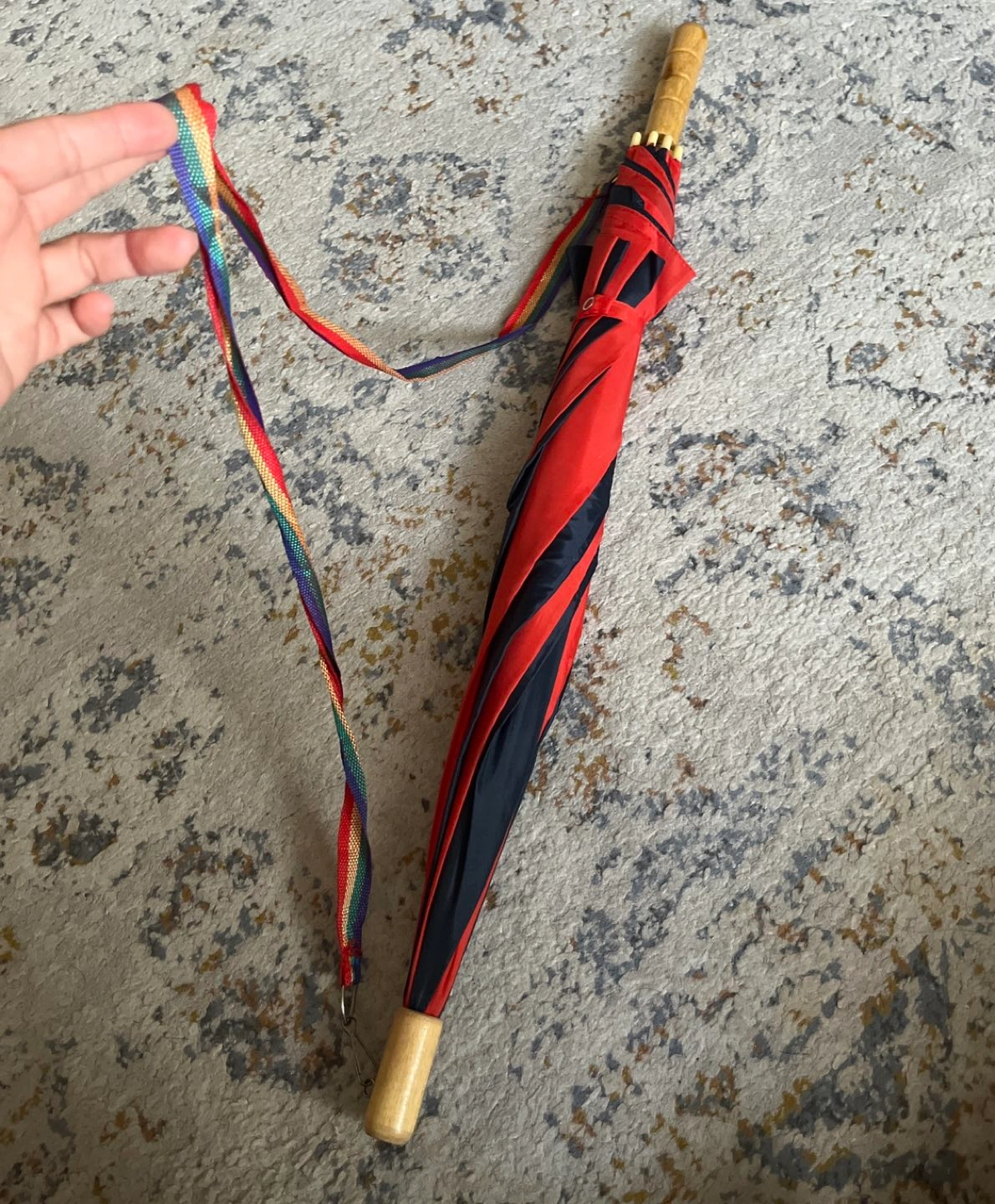 Navy and Red Striped Umbrella with removable Strap