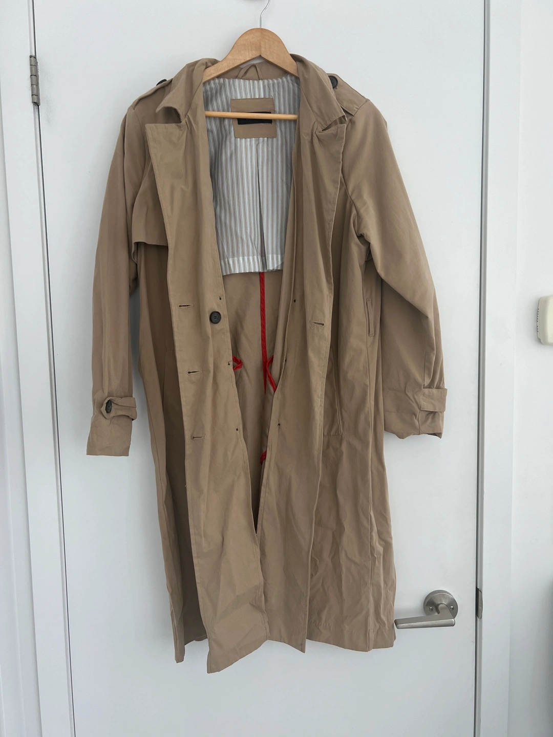 Excellent condition, only worn a few times. No tears or pilling. No belt included, but belt loops are in tact.