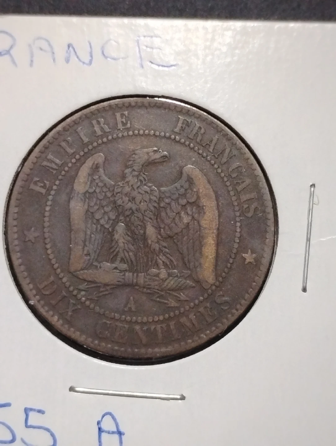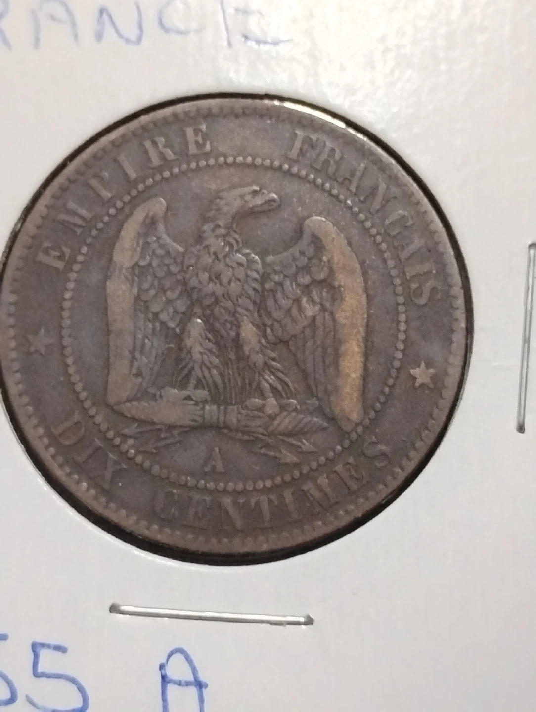 290Selling a French Dix Centimes coin from 1855. It features Napoleon III on one side and an eagle on the other. A great piece for collectors!