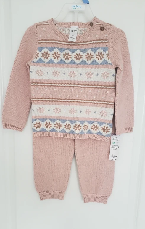 Carters brand, 100% cotton, knit 2 piece sweater and pant set for girls 24 months. Beautiful set.