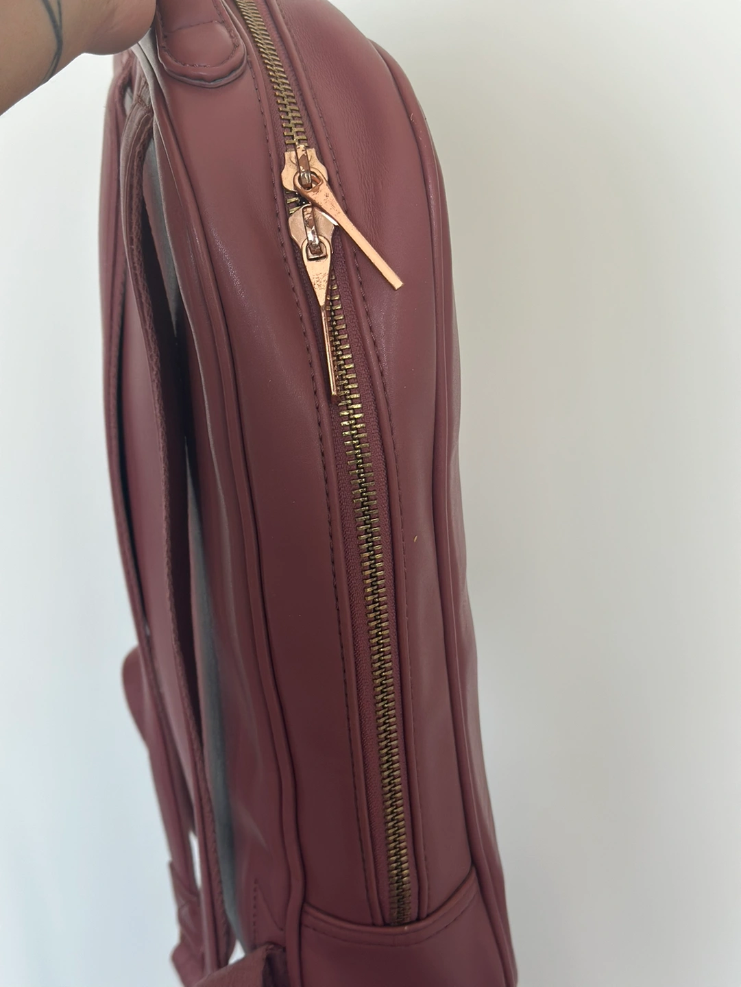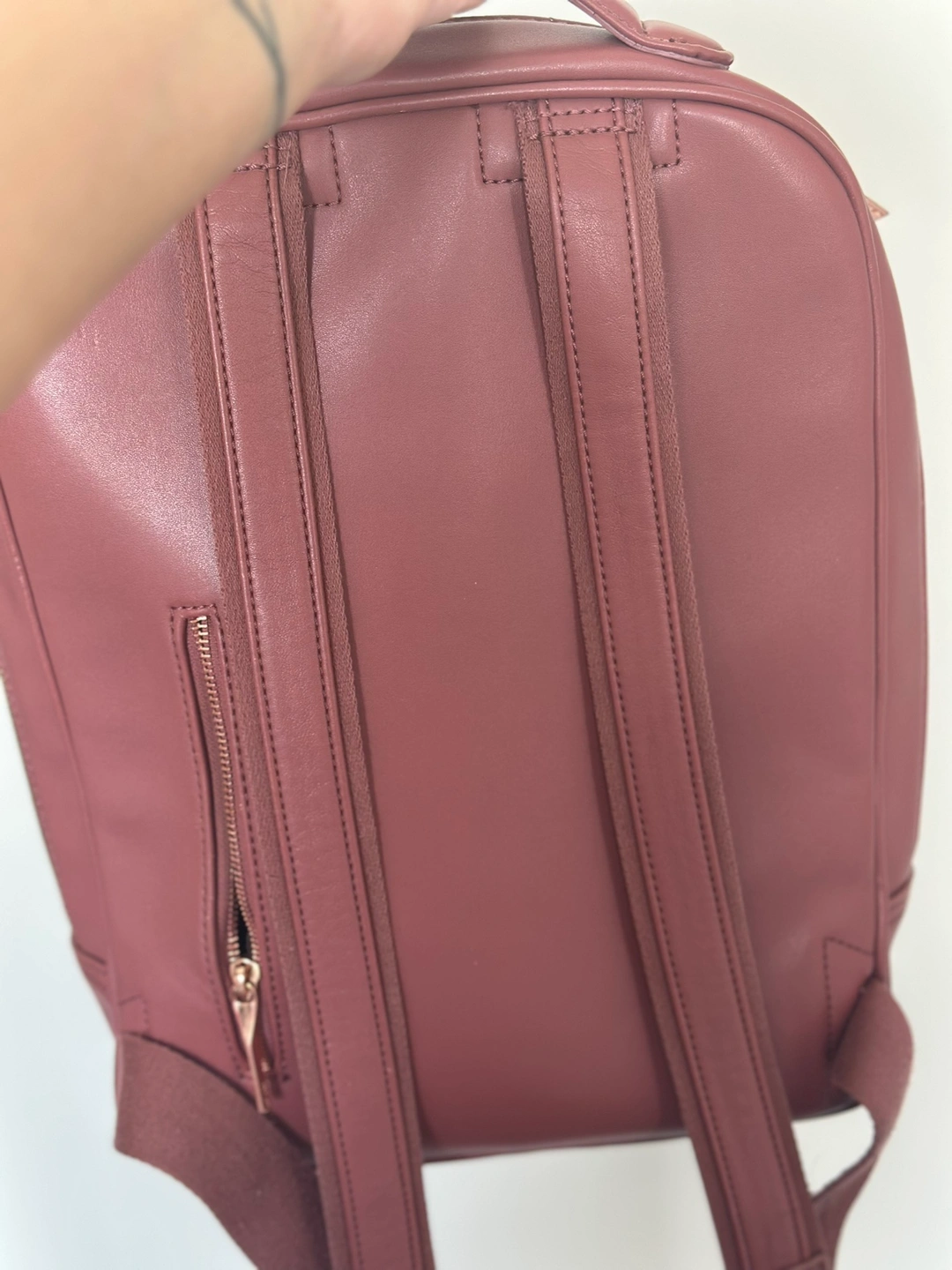 There is pocket at the back of the bag. The zipper is caught on the cloth so unable to zip up. Should be fixable if patient. I’m moving hence listing.