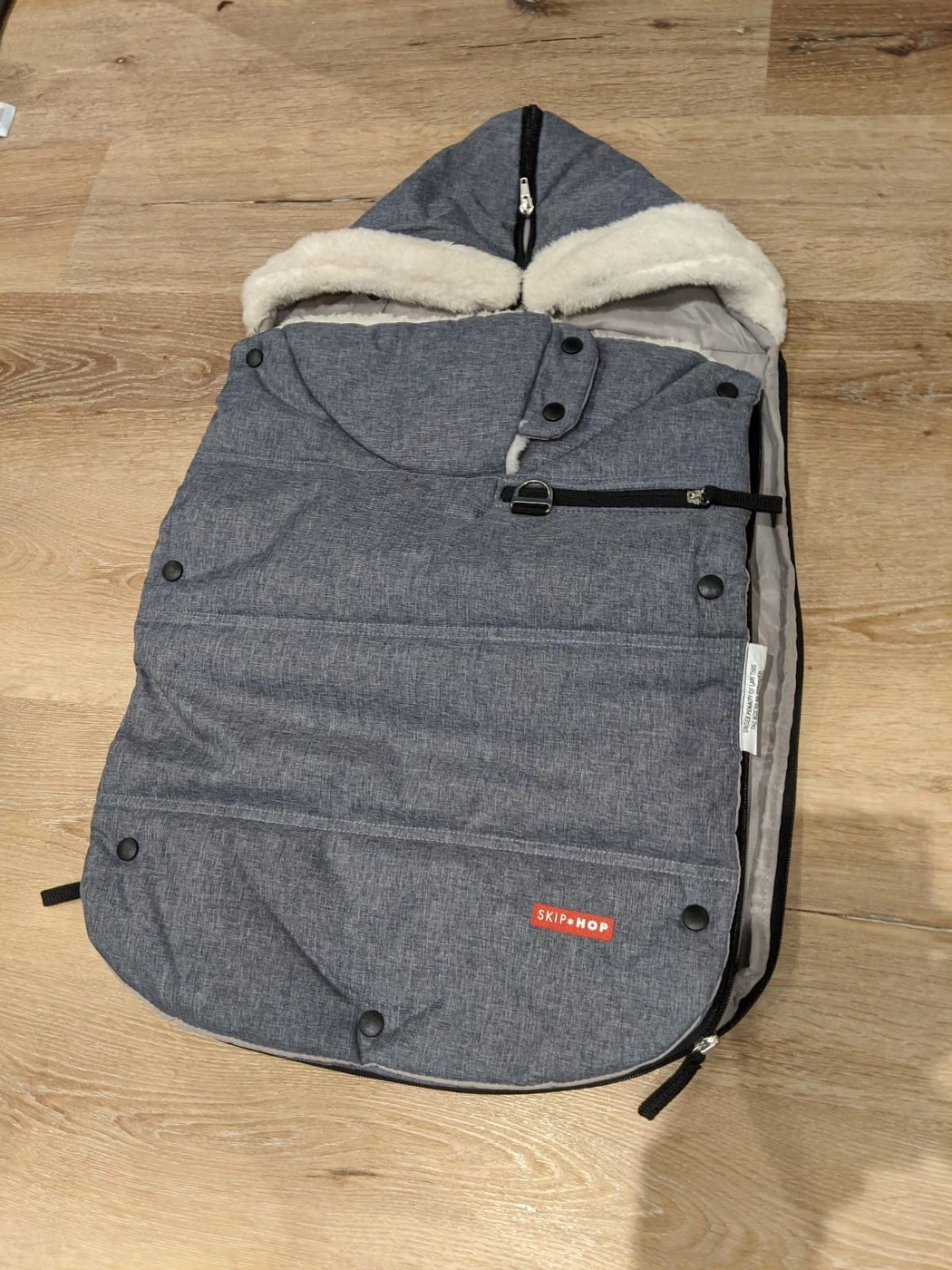 Do note that this is the "infant" sized footmuff. Skip Hop also sells a "toddler" size which is bigger.