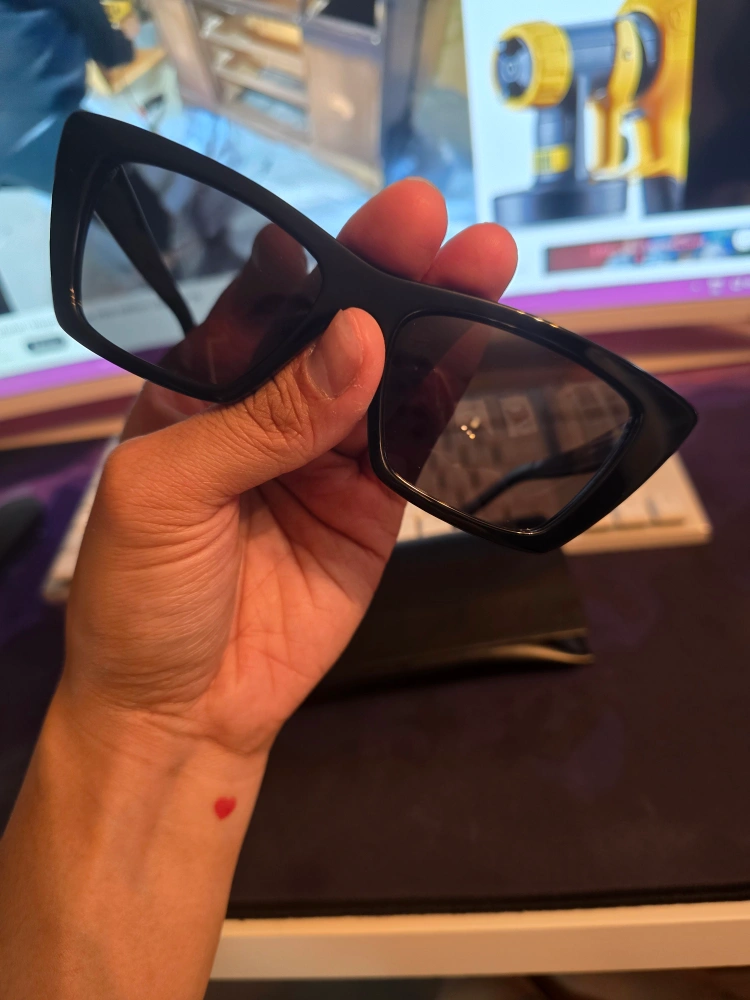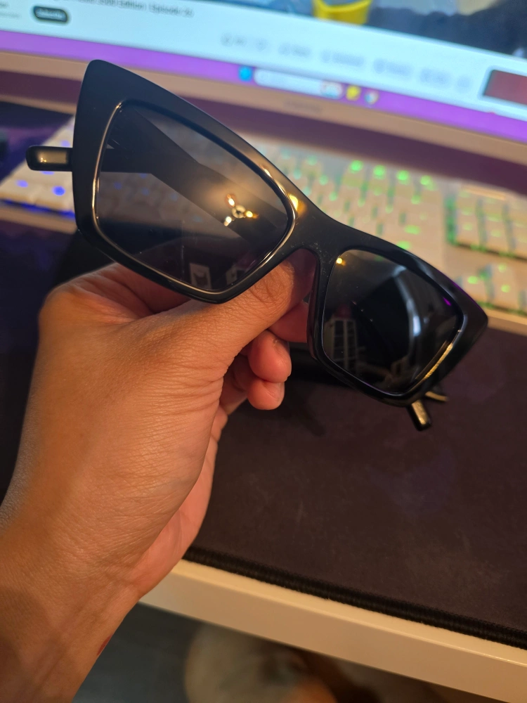BRAND NEW SUNGLASSES WITH CAT-EYE FRAMES AND NYLON LENSES.