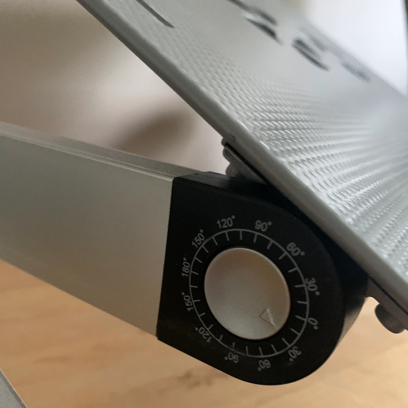 💡Adjustable laptop stand with two fans and mouse rest.