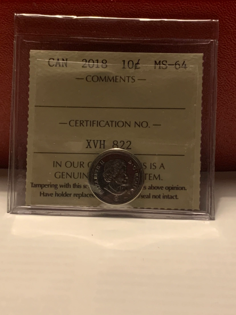 This 2018 ICCS (International Coin Certification Service) Certified Canadian Dime is the perfect gift for any coin collector and/or hobbyist whether a beginner or avid collector!