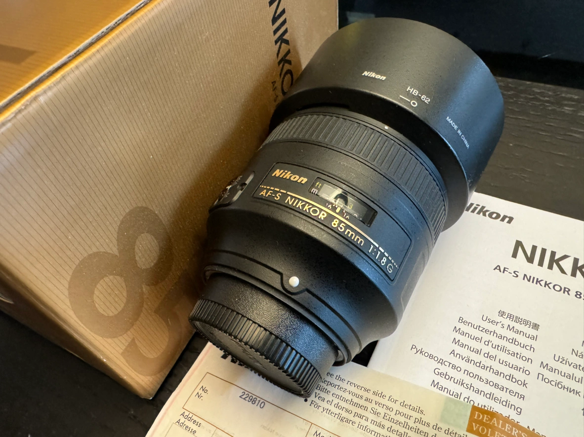 Nikon 85mm 1.8G AFS lens. Like new in box.