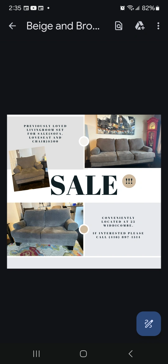 Set Daisy includes Daisy sofa, love seat, and chair . Wooden legs. Color: charcoal. Last pics for checking regular price at store. Pet and smoke-free home . Available for pickup near Eglinton and Kipling area.