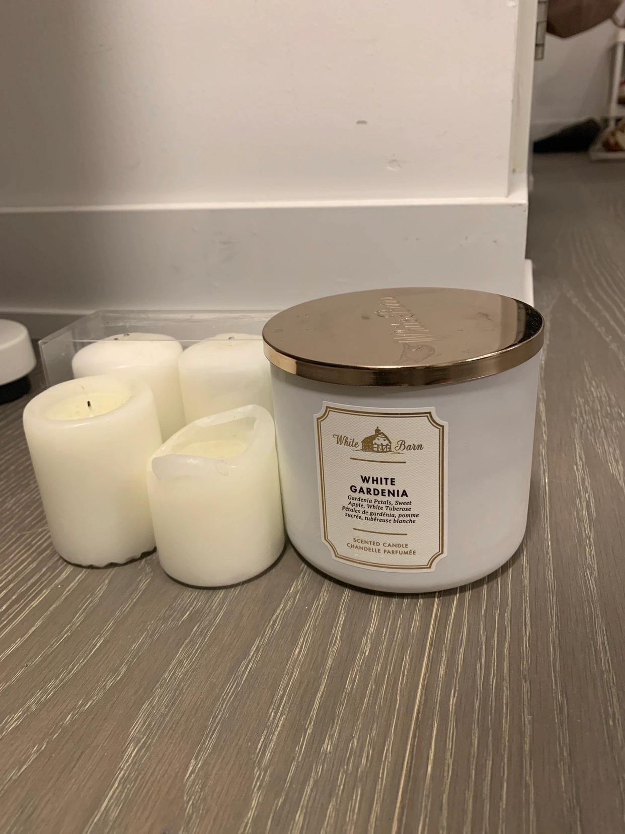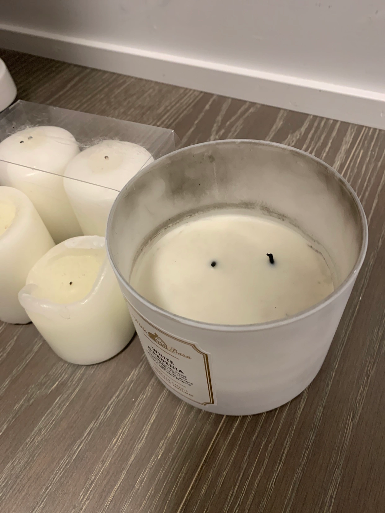 Take all of them home for $5, the small candles are scentless. The bath body works candle- White Gardenia has a very sweet and elegant floral scent. Trying to get rid of some stuff before I move out soon.