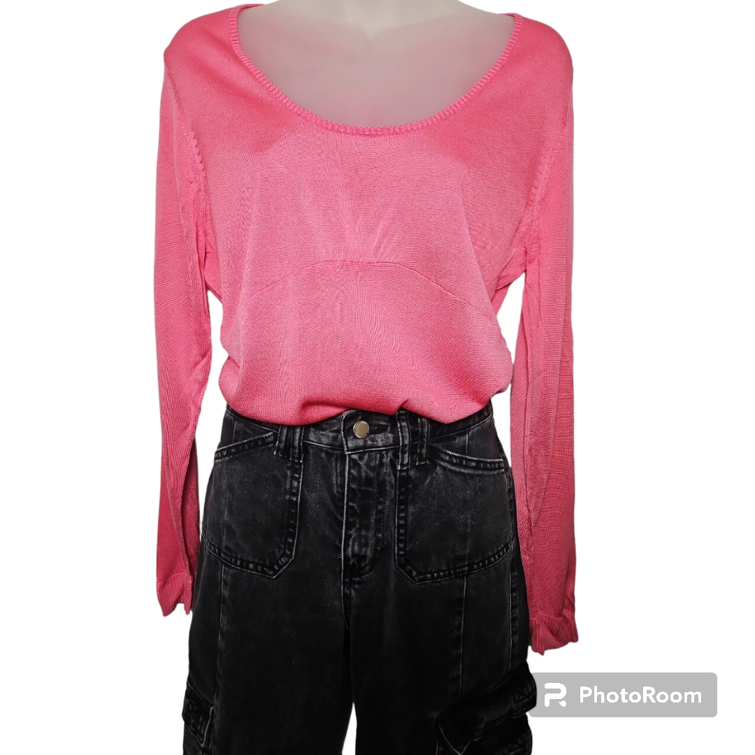 Talbots Pure Silk Rose Pink Scoop Neck Knit Sz Petite L