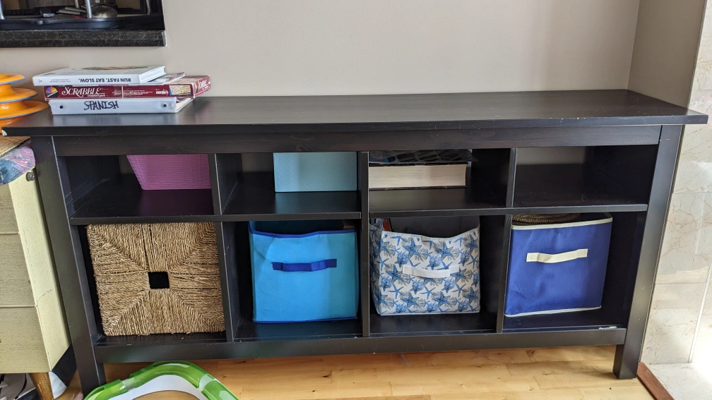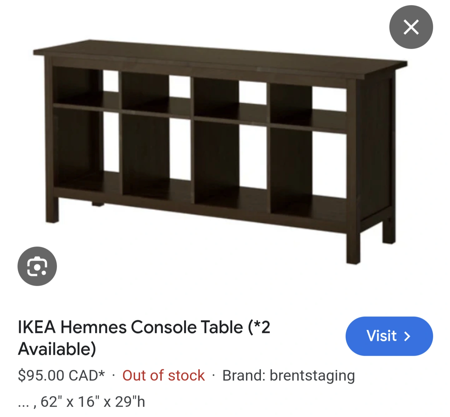 Ikea Hemnes console table; discontinued pretty dark brown colour