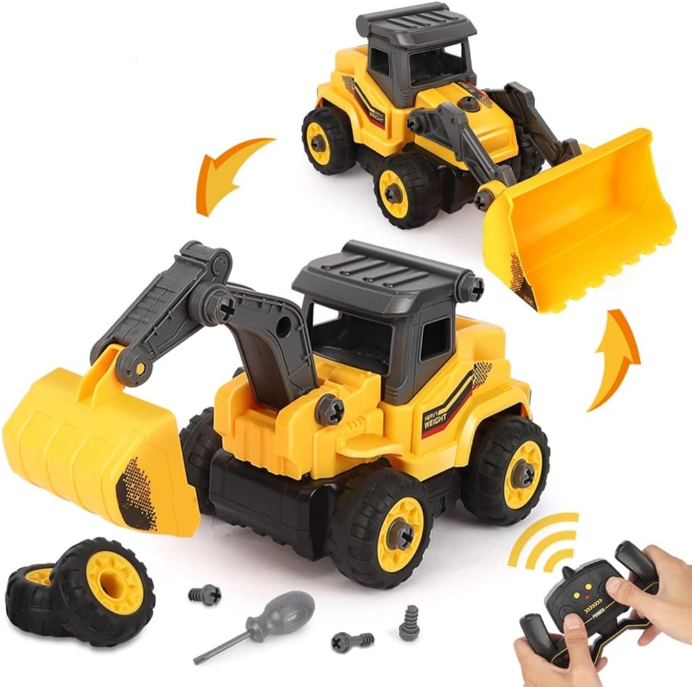2 in 1- Remote Control Excavator and Bulldozer Toys - Take Apart