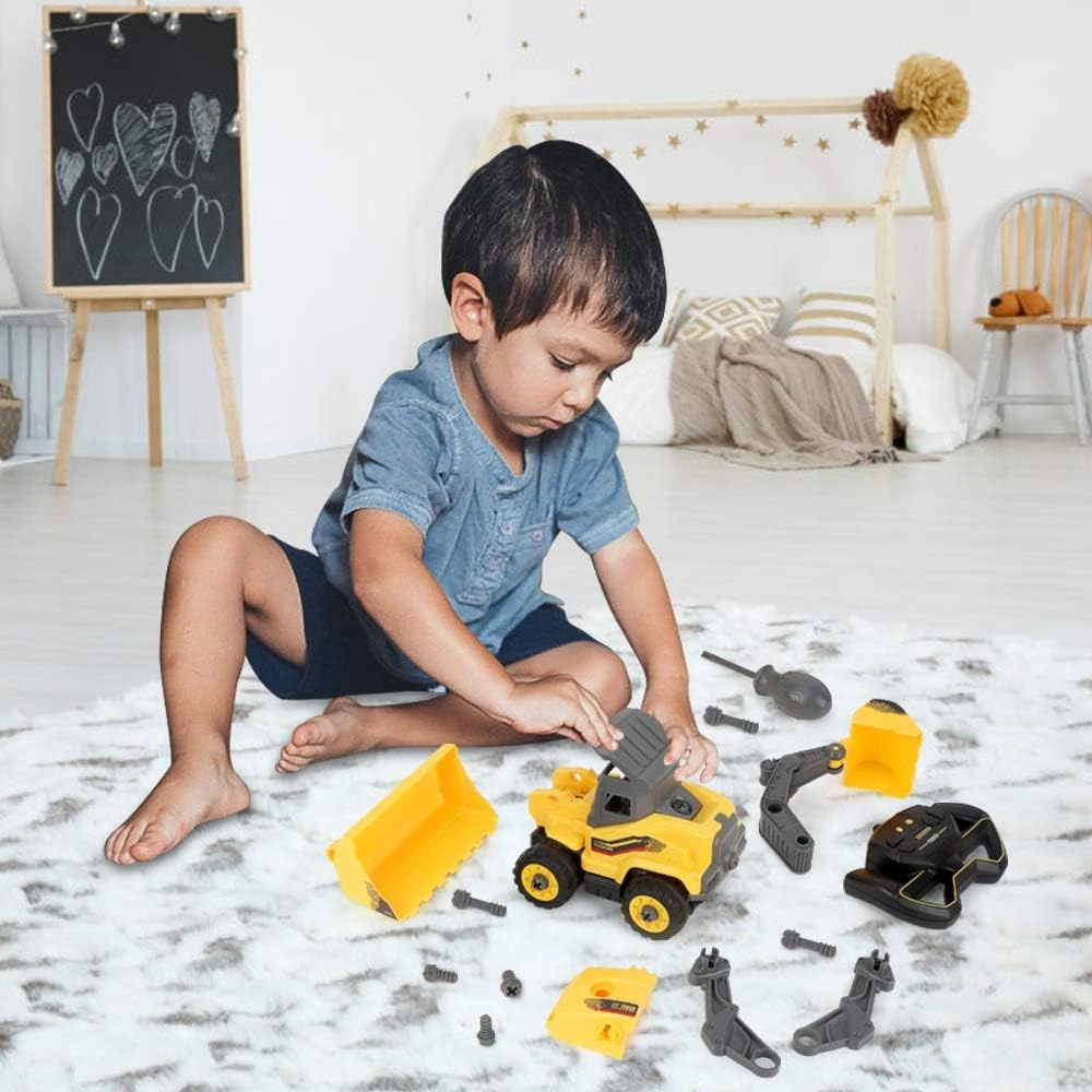 【Super Value】 2 In 1 Remote Control Battery Powered DIY Construction Trucks Set, Great gift Toys for Boys 3,4,5,6,7 Year old and up.
