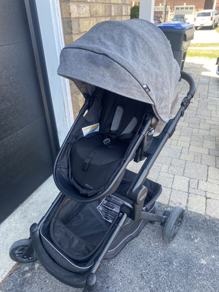 83Great condition barley used! Manufactured in 2022 infant car seats expire every 7 years.. grey coloured, the set comes with 2 car bases great for a family with 2 cars! Enjoy face-to-face smiles by raising the Slide2Me seat or infant car seat to one of three height positions to find just the right ride as baby grows Reversible stroller seat can face parent or the world, for just the right ride as baby grows; Toddler seat converts to bassinet mode, for comfortable strolls with baby. 3 strollers in 1: Infant Car Seat Carrier, Infant Bassinet, and Toddler Stroller to stroll from infant to toddler Includes the Graco SnugRide SnugLock 35 Elite Infant Car Seat, rear-facing for infants from 1.8-16 kg (4-35 lb) and up to 81 cm (32 in) for an easy transition from car to stroller Expandable extra-large storage basket means more room for parent and baby essentials