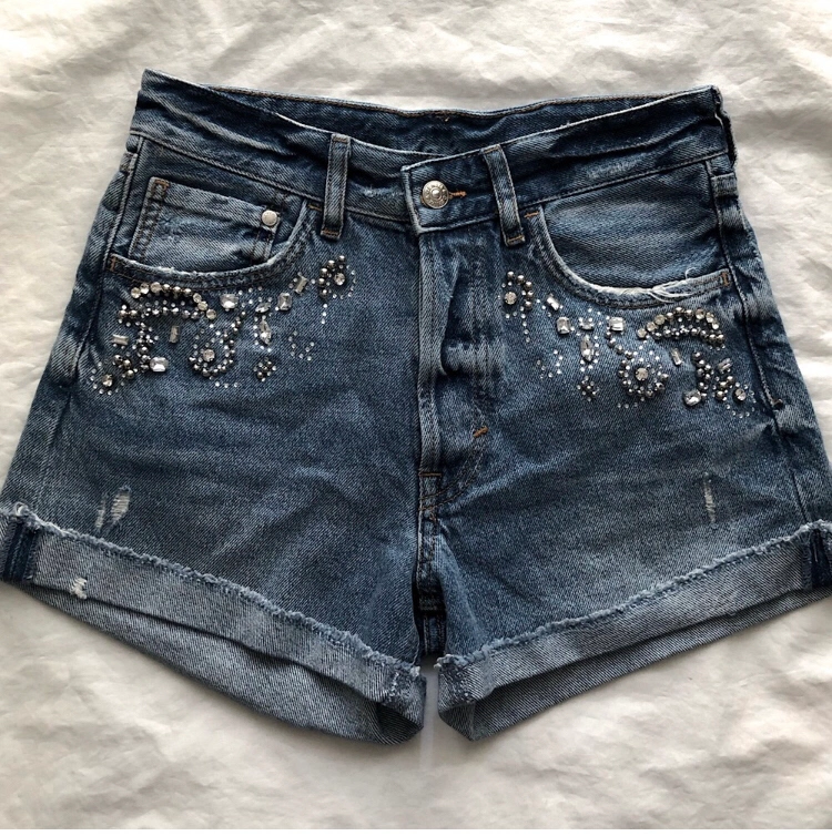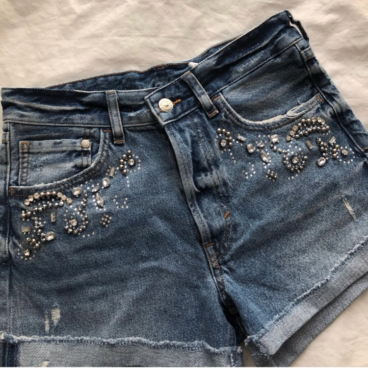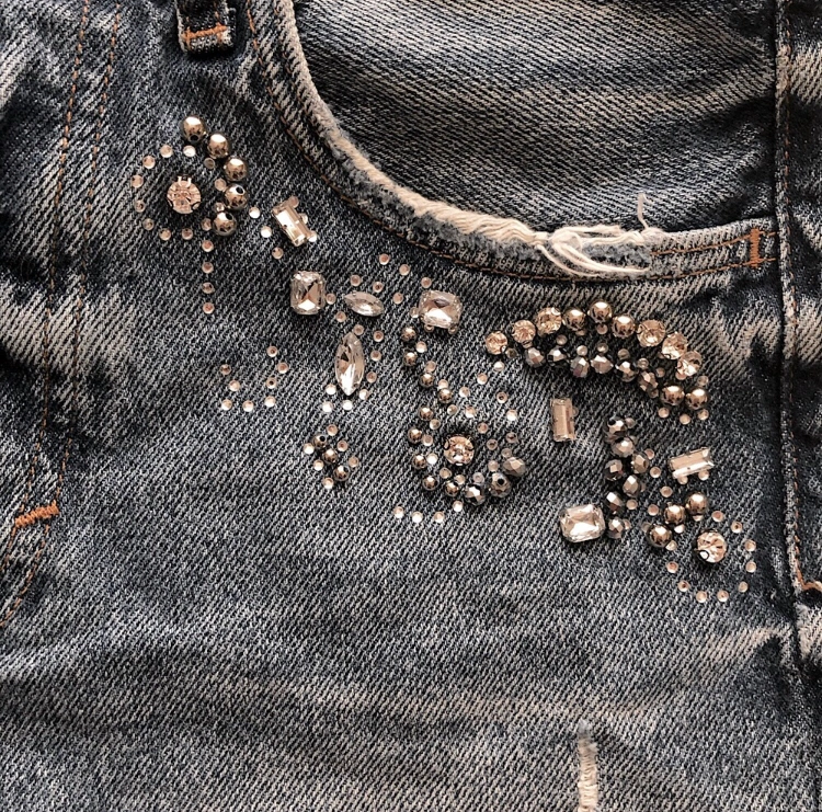 Beautiful unique beaded gemstone embroidery on each side and slight distressing