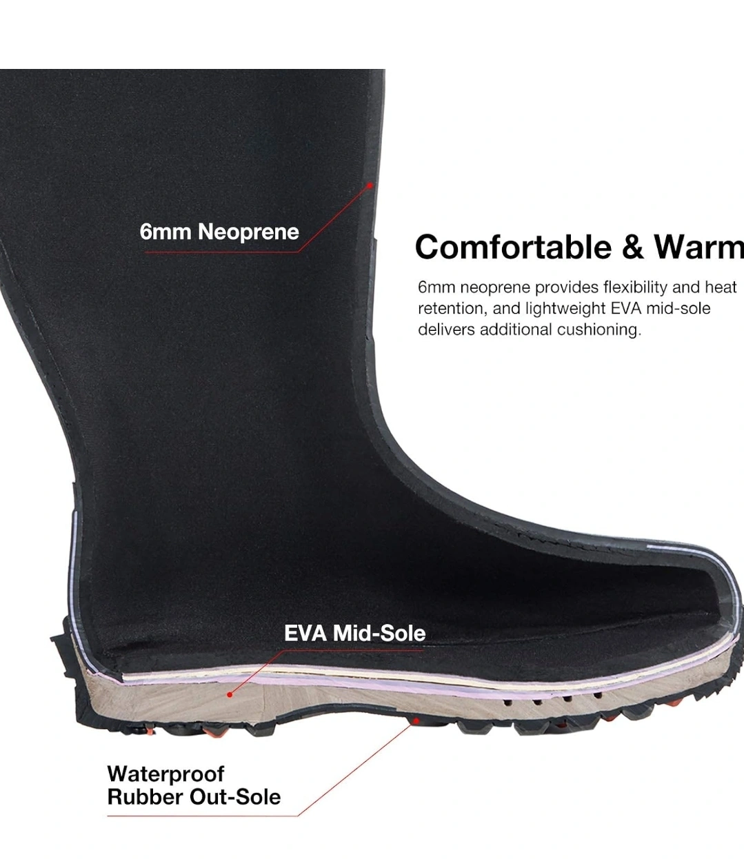 【Durable & User-Friendly】: Reinforced rubber shell on the toe and heel provides additional protection for your foot. The kick plate on the back of the hunting boots make it much easier for removal