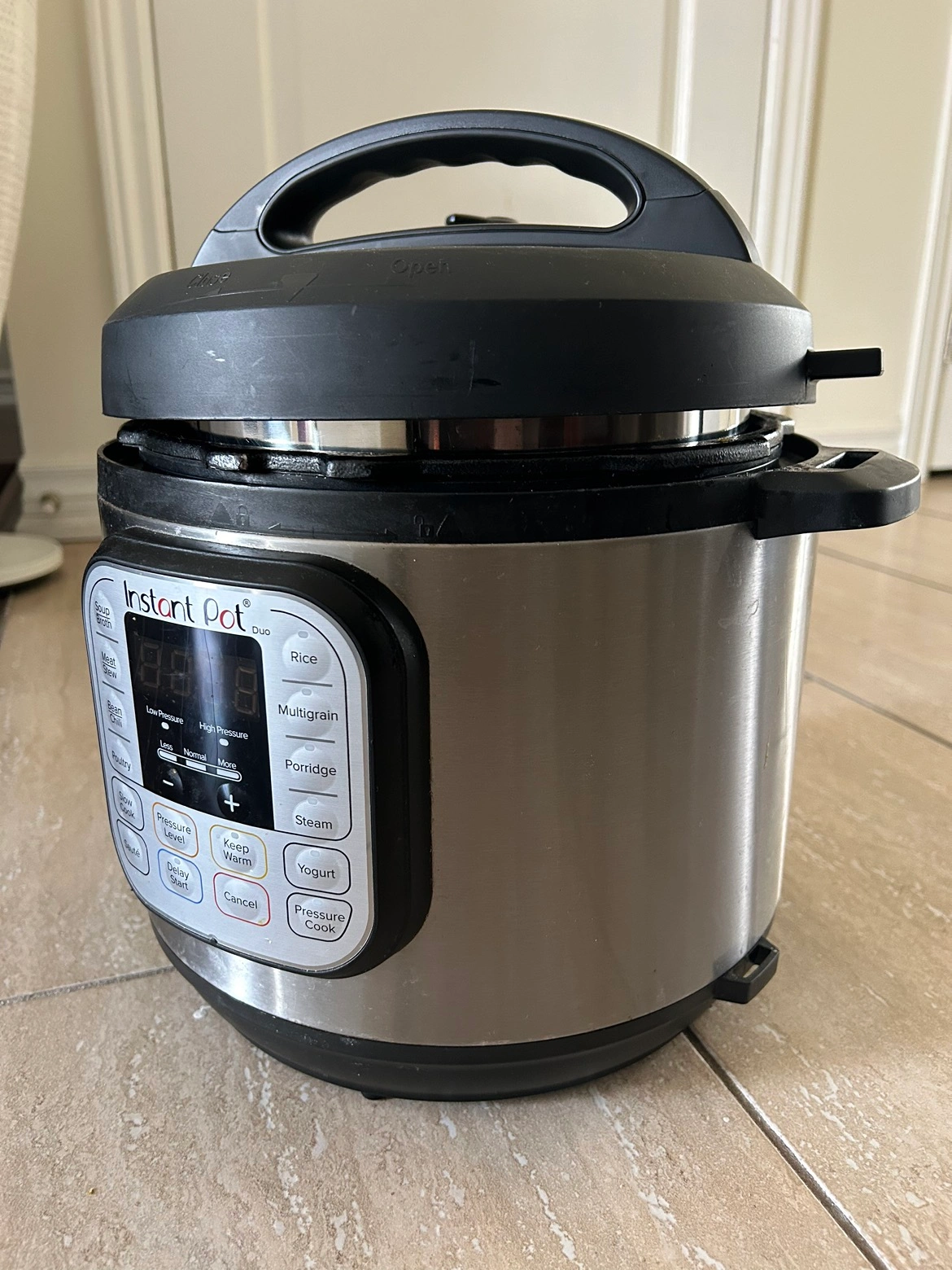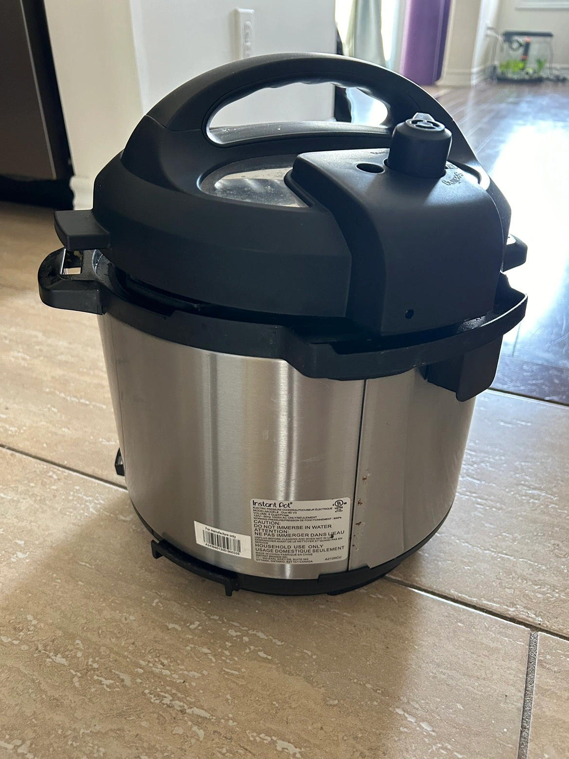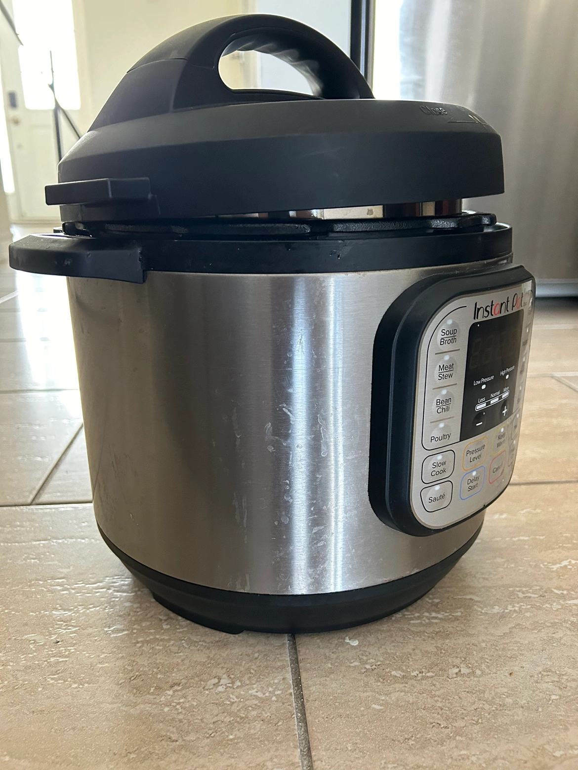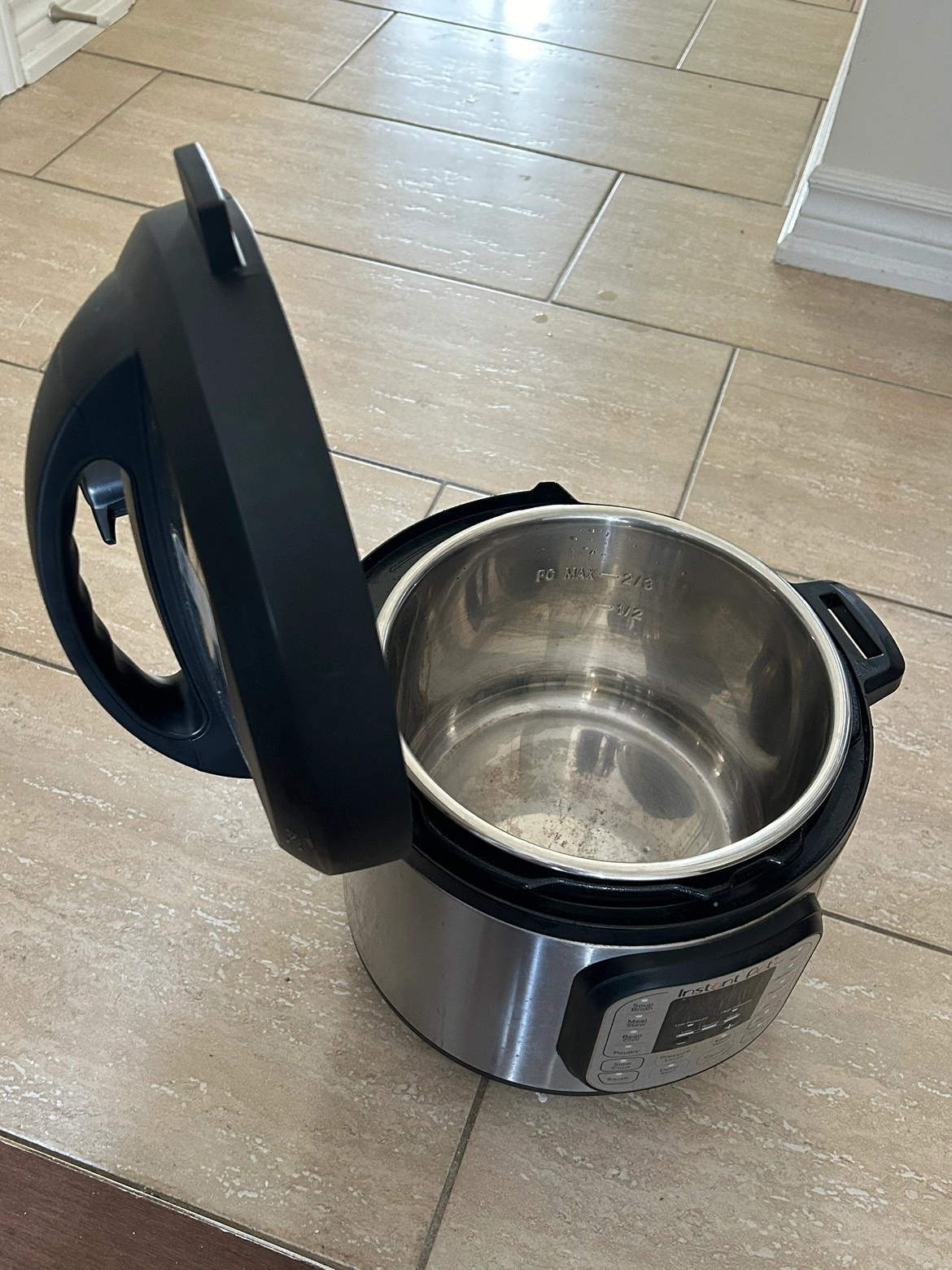 Fairly used insta pot. Perfectly functioning for all the features. Absolutely love this product but this needs to go. Total time saver for students and small families looking to save some time cooking on busy weekdays. It can pressure cook, sauté, broil and do many more while being most energy efficient ( electric )