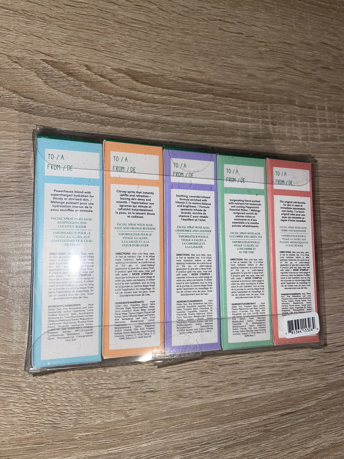 Mario Badescu mini face mist collection set of 5 Vegan Oil free 29Ml each Hydrating, Brightening, Rejunuveting, Soothing, Antioxidant, Radiant Skin, Replenishing, Cleansing, Freshening Selling for $20