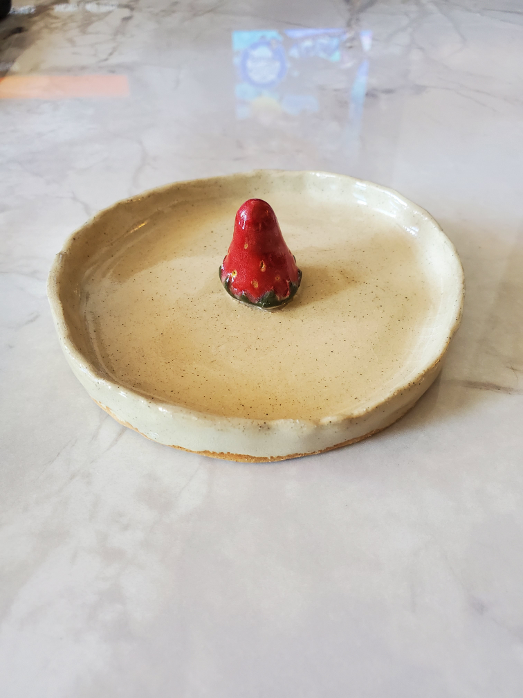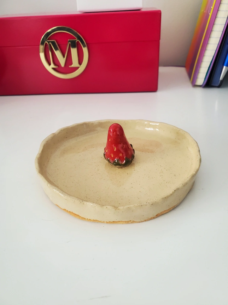 4 inch handmade ceramic strawberry jewelery dish π