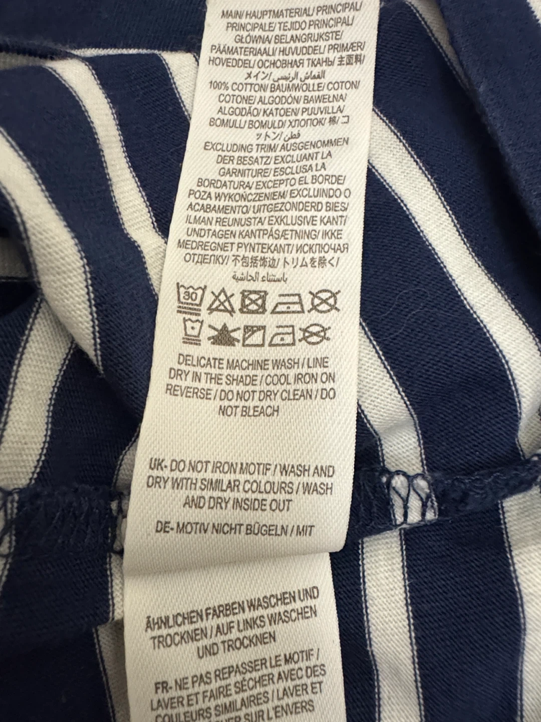 This navy and white striped t-shirt features a playful dachshund design with reversible sequins. It's made from 100% cotton. The size is 11-12Y or 152cm.