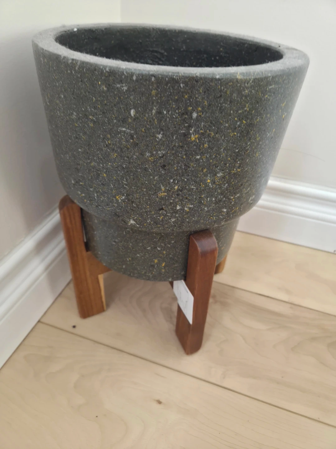 Speckled Grey Planter Pot with Wooden Stand
