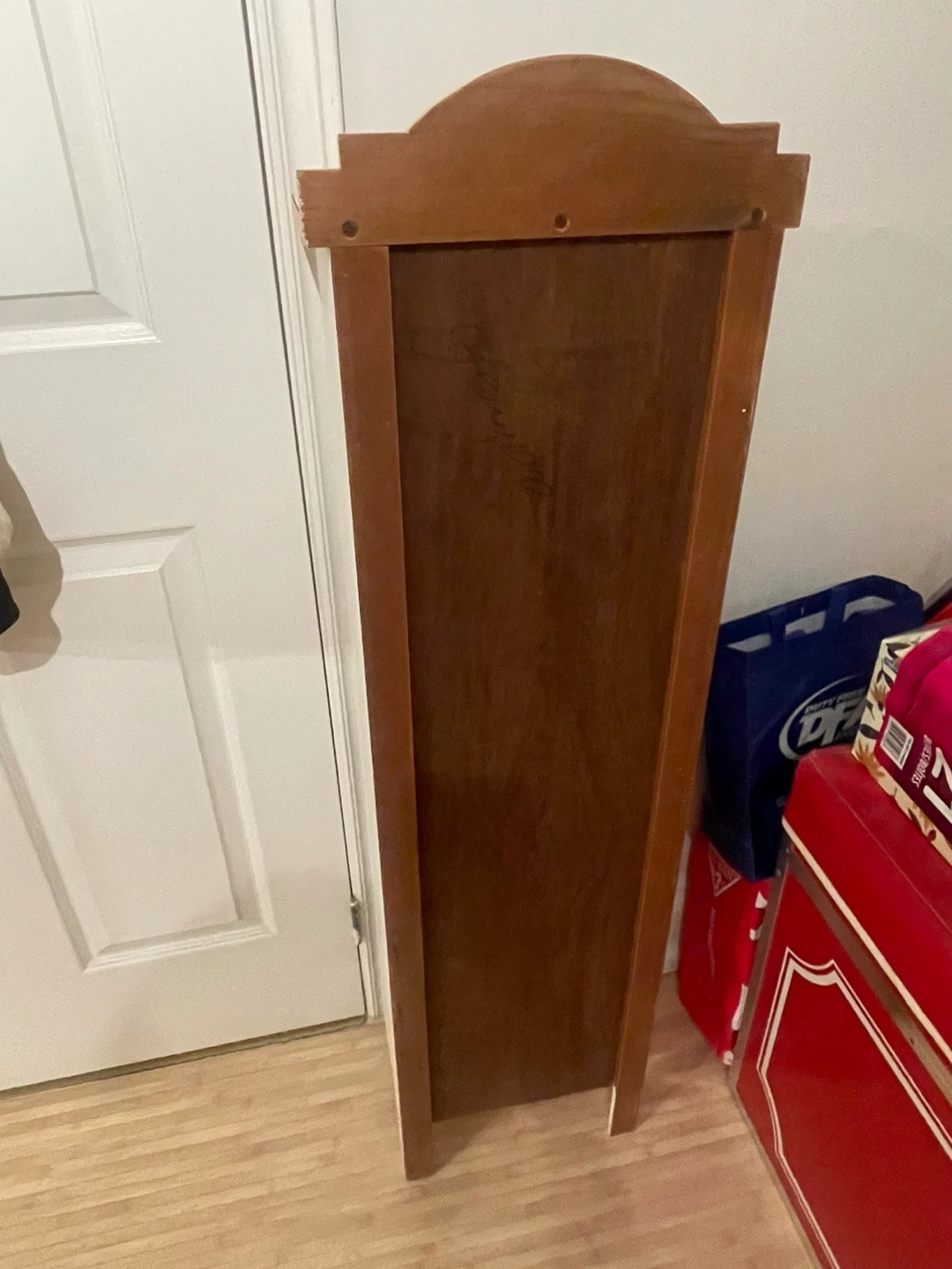 Check out this unique wooden cabinet! It features a lovely sunflower design painted on the front. It has four shelves inside, perfect for storage. The cabinet is in great condition and ready to add some charm to your home