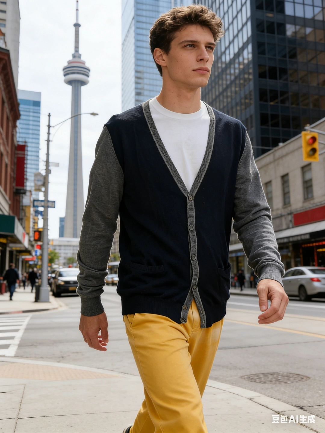 Like new navy and grey colorblock V-neck cardigan! Soft knit fabric, classic button-front design with pockets, perfect for layering in Toronto’s cool weather. Gently worn, in excellent condition.