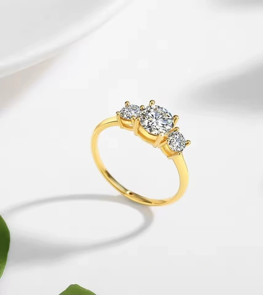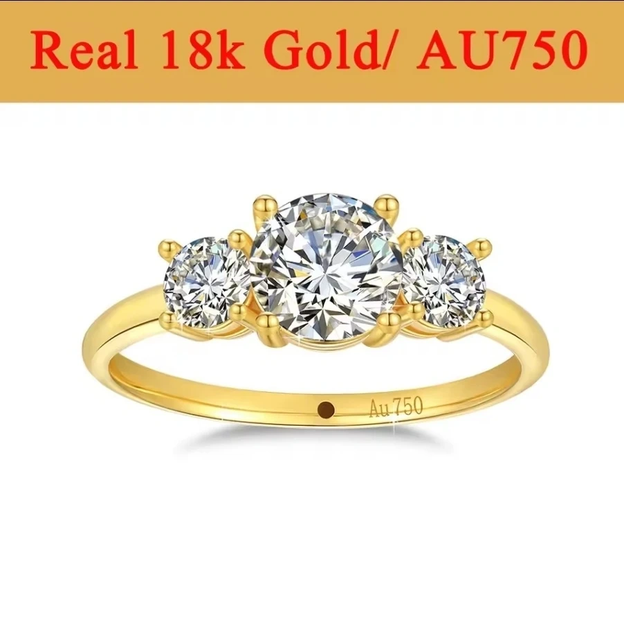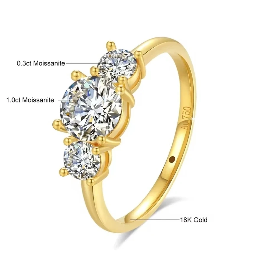 25This is a beautiful 18k gold ring with moissanite stones. The center stone is 1.0ct and the side stones are 0.3ct each. It's a stunning piece that would make a great addition to any jewelry collection and adds a comfortable wear with elegant designs that shines like a rainbow. This beauty is 100% 18k hollow Certified Ring brings about style with Modern European Schick model appearance to the party. Don't miss this opportunity.