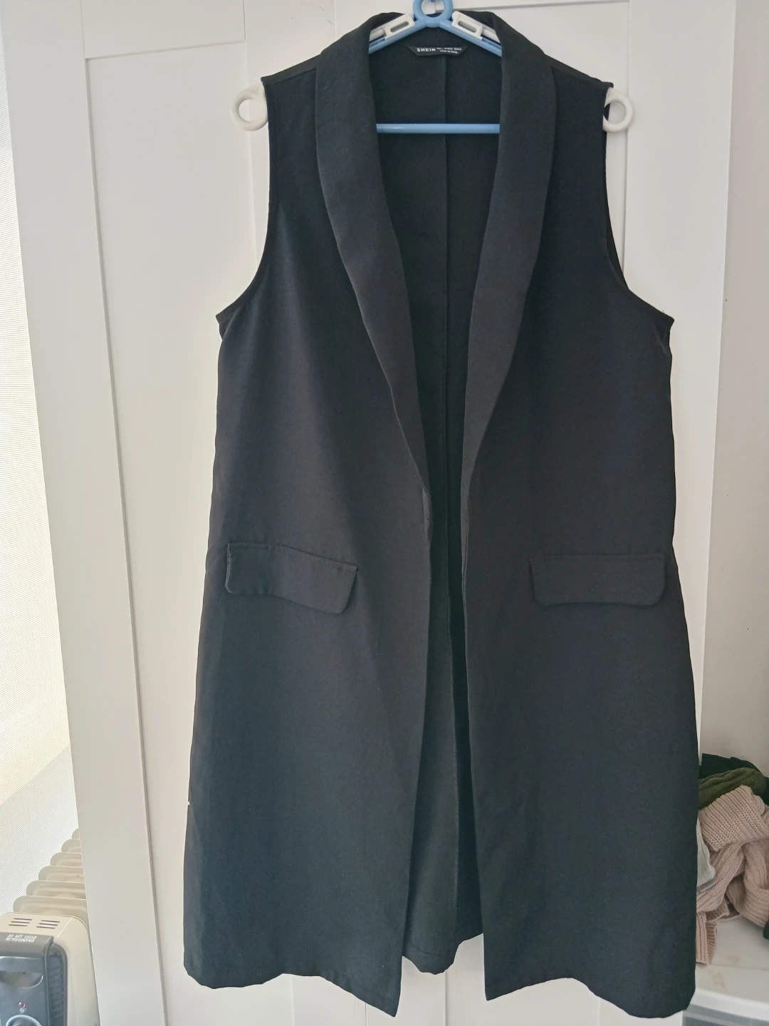 Black sleeveless vest from SHEIN. Size L, EU 40/42, US 8/10. Made in China. Perfect for layering over outfits!