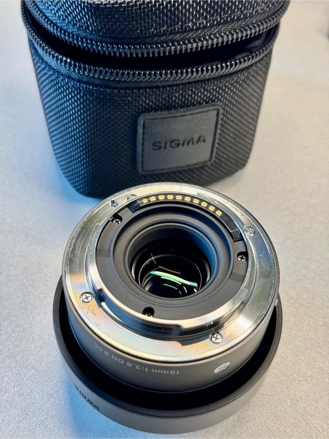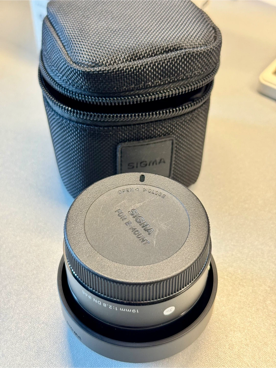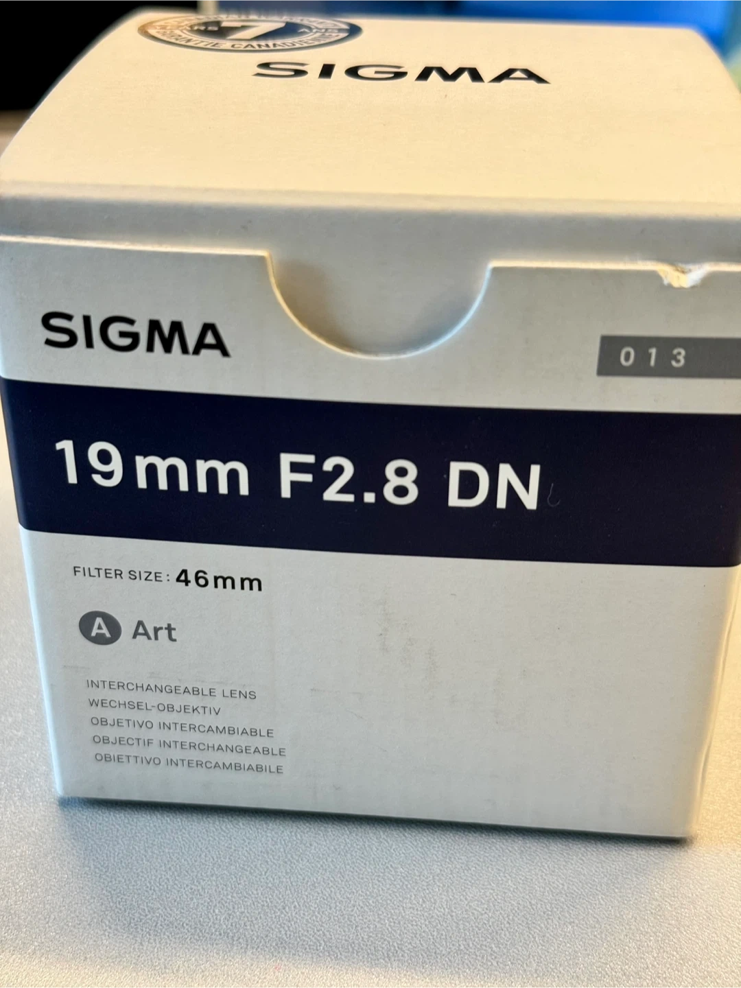 This is a Sigma 19mm F2.8 DN Art interchangeable lens for Sony E-mount. It has a filter size of 46mm. The lens comes with the protective carrying case.