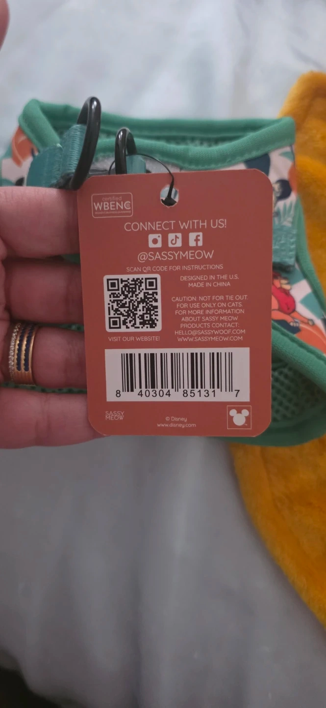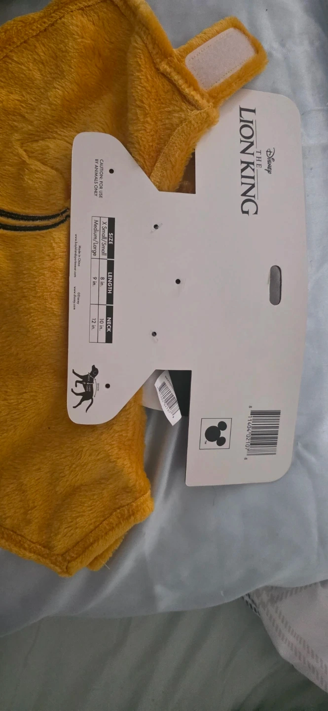 This Disney The Lion King pet apparel and step-in harness set is designed for your furry friend. The apparel is made of soft, fuzzy material, and the harness features a vibrant jungle-themed print. Both items are officially licensed by Disney. SIZE S