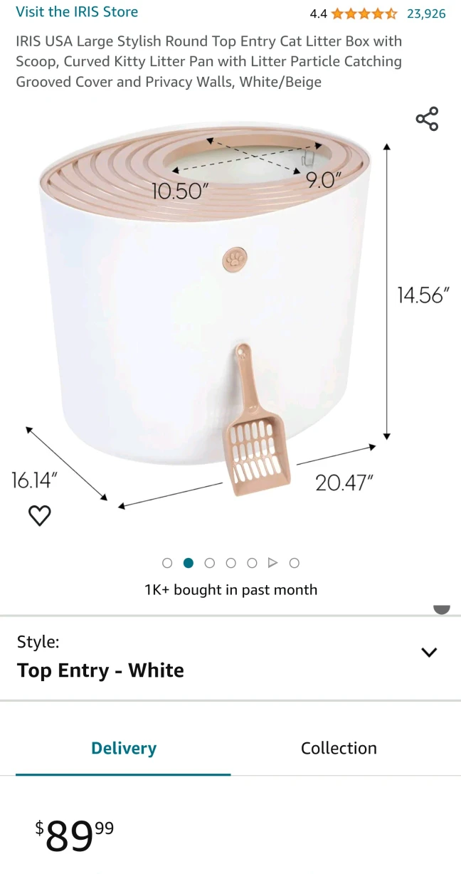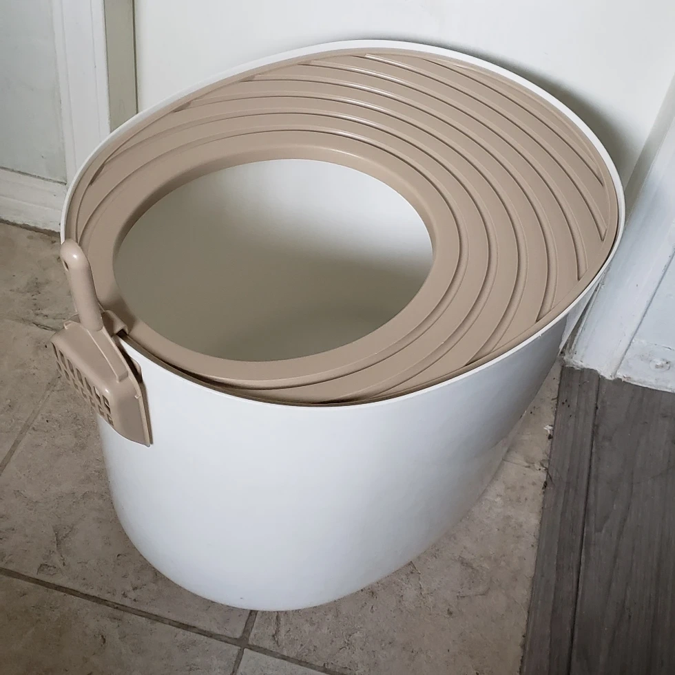 IRIS USA Large Stylish Round Top Entry Cat Litter Box with Scoop