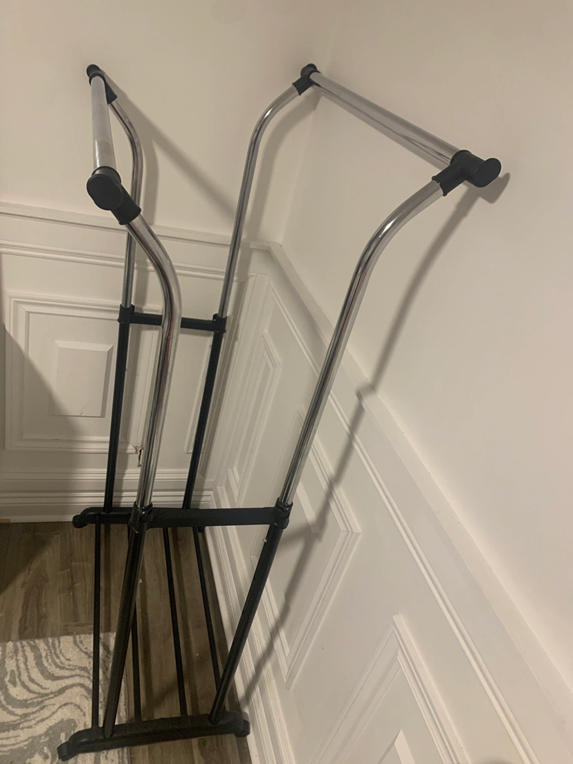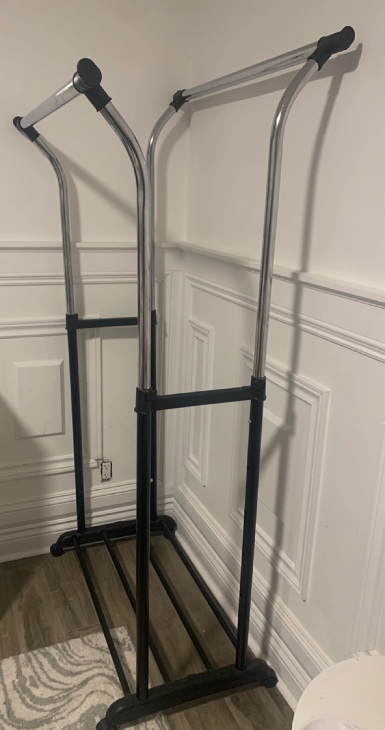 Double garment clothing rack made by Mainstays.