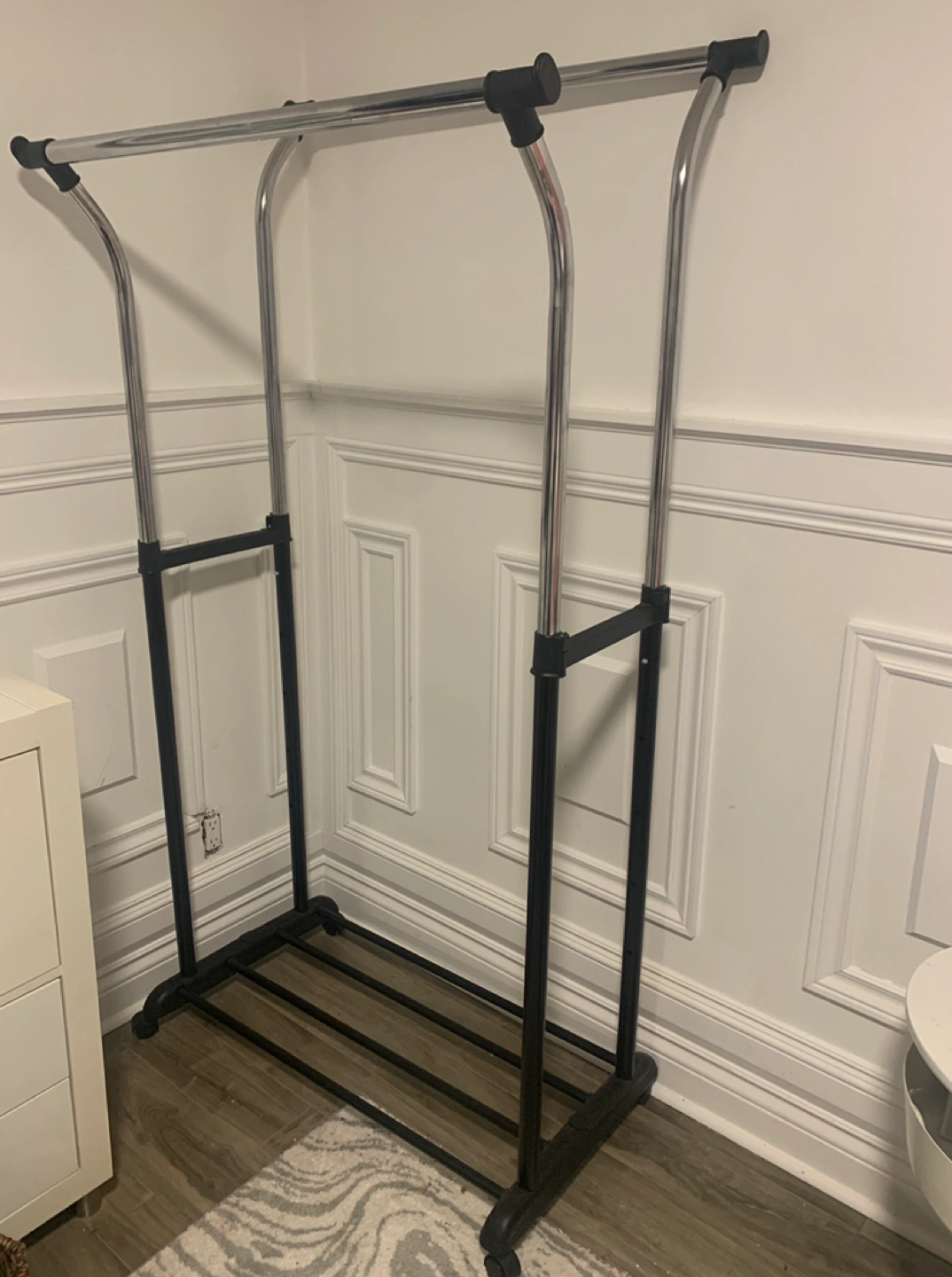 Mainstays Black and Chrome Double Clothing Rack with Wheels