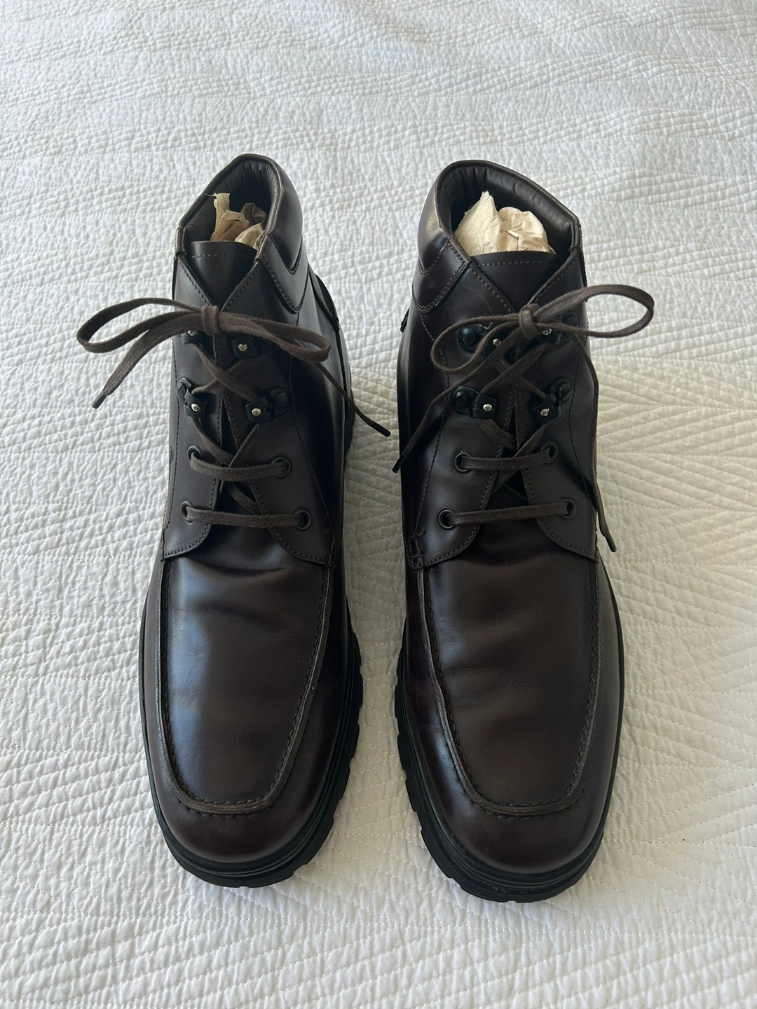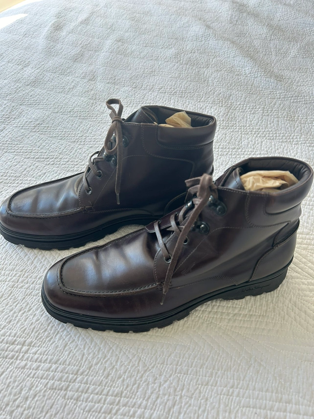 SALVATORE FERRAGAMO Men’s Coffee Brown Leather Lace Up Combat Boot