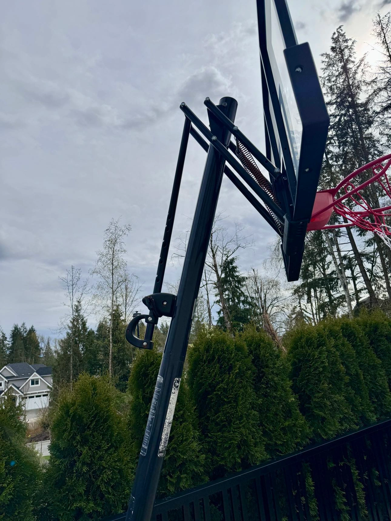 Package includes: Backboard, rim, mesh, base and poles