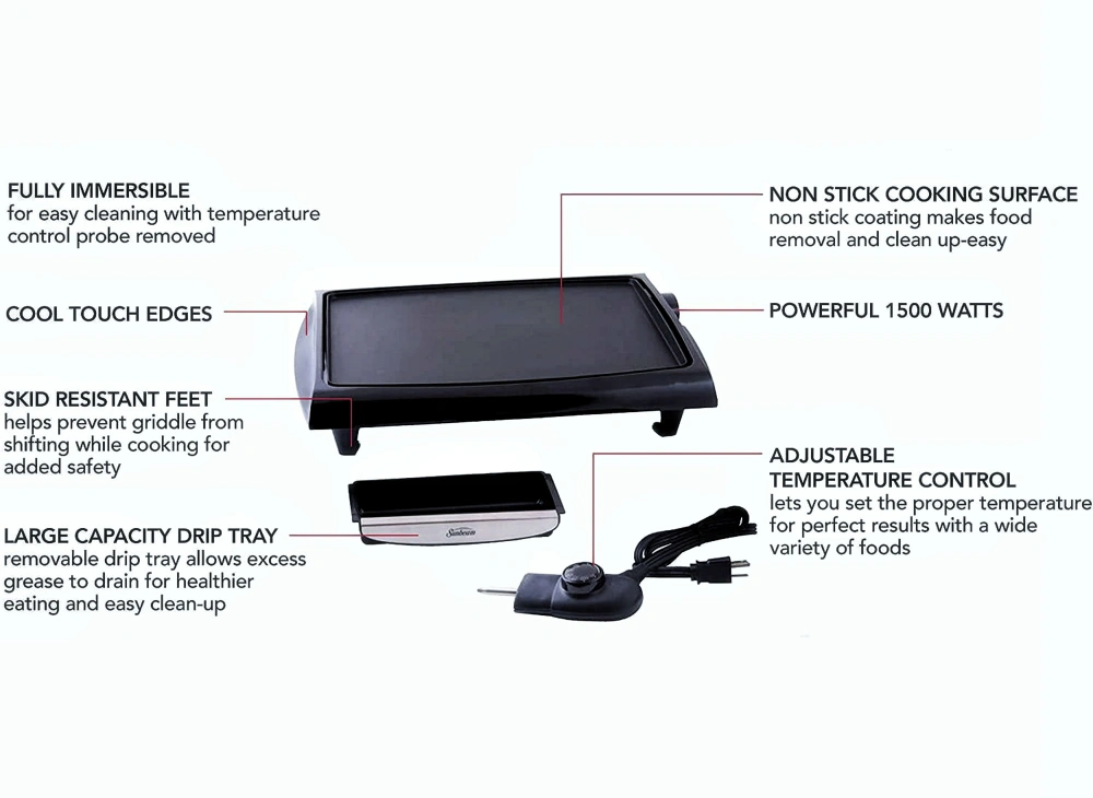Practical and pleasurable, the Sunbeam, Non-Stick Electric Griddle is easy use, with all the quality you would expect from a Sunbeam product. The large grilling surface makes everyday cooking simple. Ideal for party prep too. You can grill everything from pancakes to crab cakes with panache.
