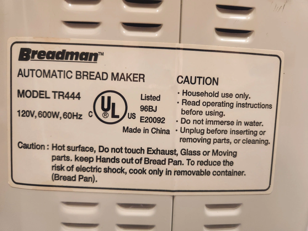 Breadman TR444 2-Pound Rapid-Bake
