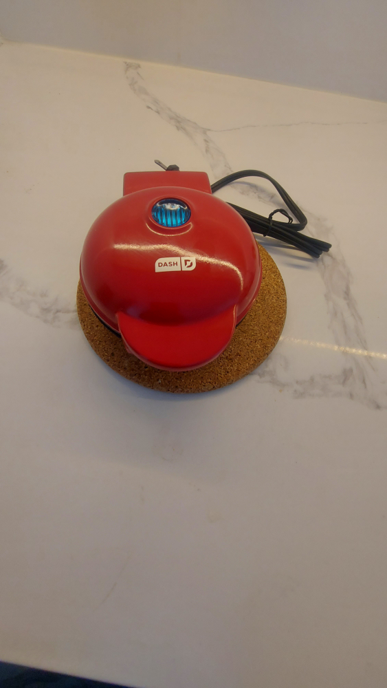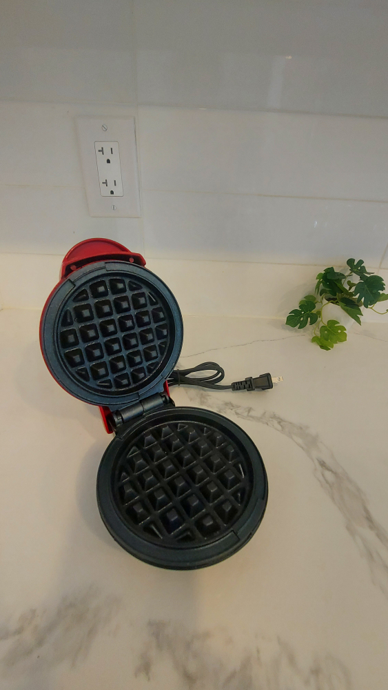 Almost New mini waffle maker, makes paninis, hash browns, and even biscuit pizzas! Any wet batter will “waffle” your treats and snacks into single serving portions. Great for kids or on the go!