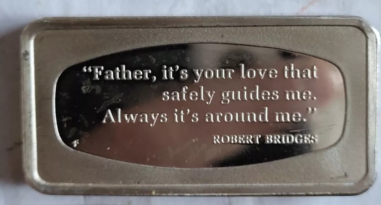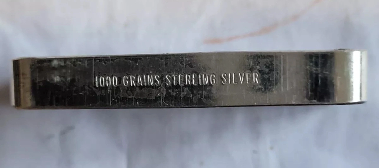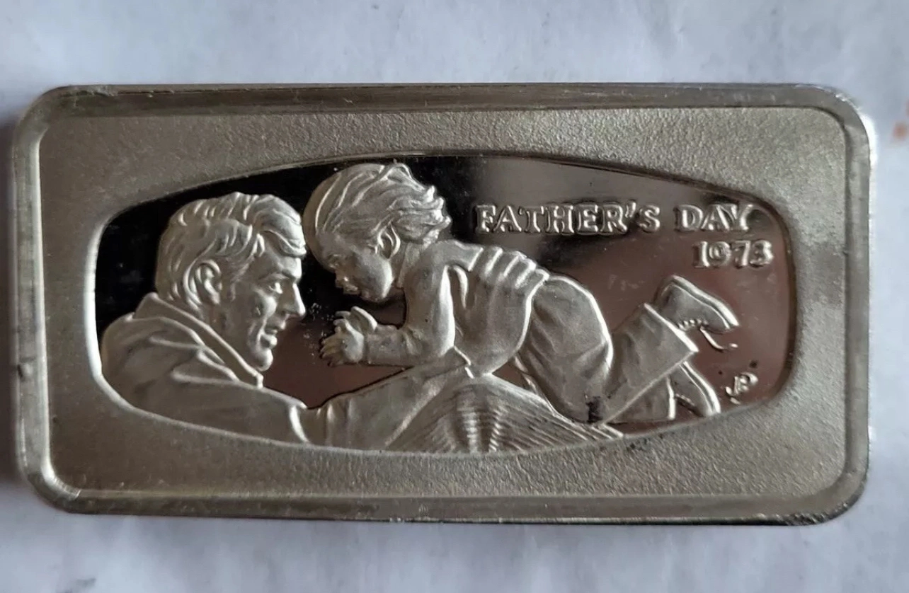 Celebrate Father's Day with this stunning .925 silver 1000 grains bar from 1973, minted by the renowned Franklin Mint in the United States. This bar features a classic bar shape and is a great addition to any collection. Crafted with precision and attention to detail, this bar is a true testament to the quality of Franklin Mint's workmanship. Whether you're a collector or looking for a unique Father's Day gift, this bar is sure to impress. Don't miss out on this rare and timeless piece of silver bullion.