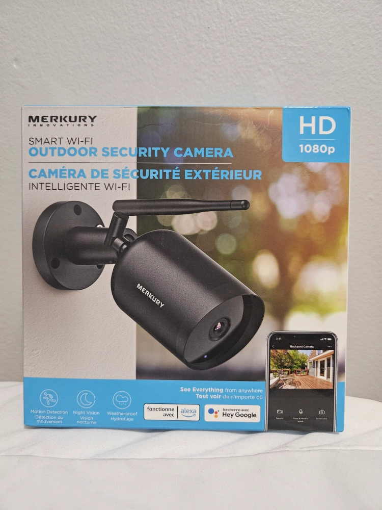 Merkury Innovations Smart Outdoor Camera, 1080p, Weather Resistant, Motion Sensor, Night Vision with Voice Control, Wi-Fi, No Hub Required