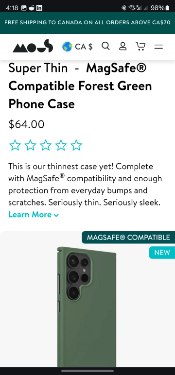 Mous is a very good brand known for fantastic protection and drop tests. This has MagSafe magnetic capability, is very slim and helps keep your S24 Ultra safe and secure while keeping your phone as sleek as possible. See pic and research on Mous website.