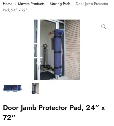 New and still in packaging - clicked on two in my cart by accident. Blue polyester padded door jamb protector protects doorways and bannisters. Has three heavy duty built in springs to hold in place. Professional quality and a small investment to protect your precious investment.