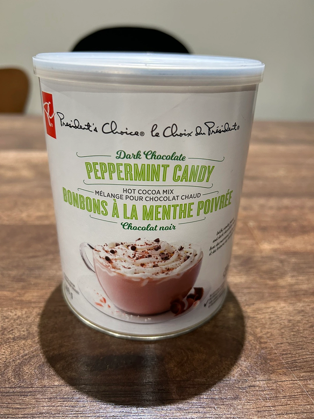 Dark chocolate peppermint candy flavour. Hot cocoa mix. Brand new unopened. 1 available. 500 grams. Expires in 2025 May 1st.