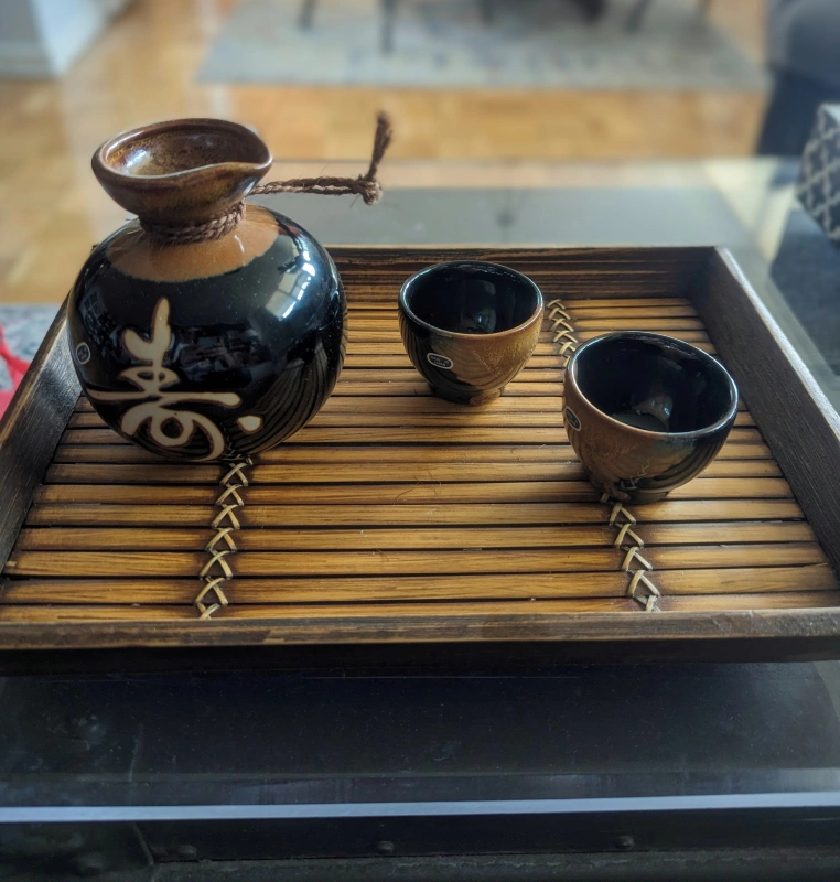 Japonese bottle and shot glasses. pick up only, price is negotiable