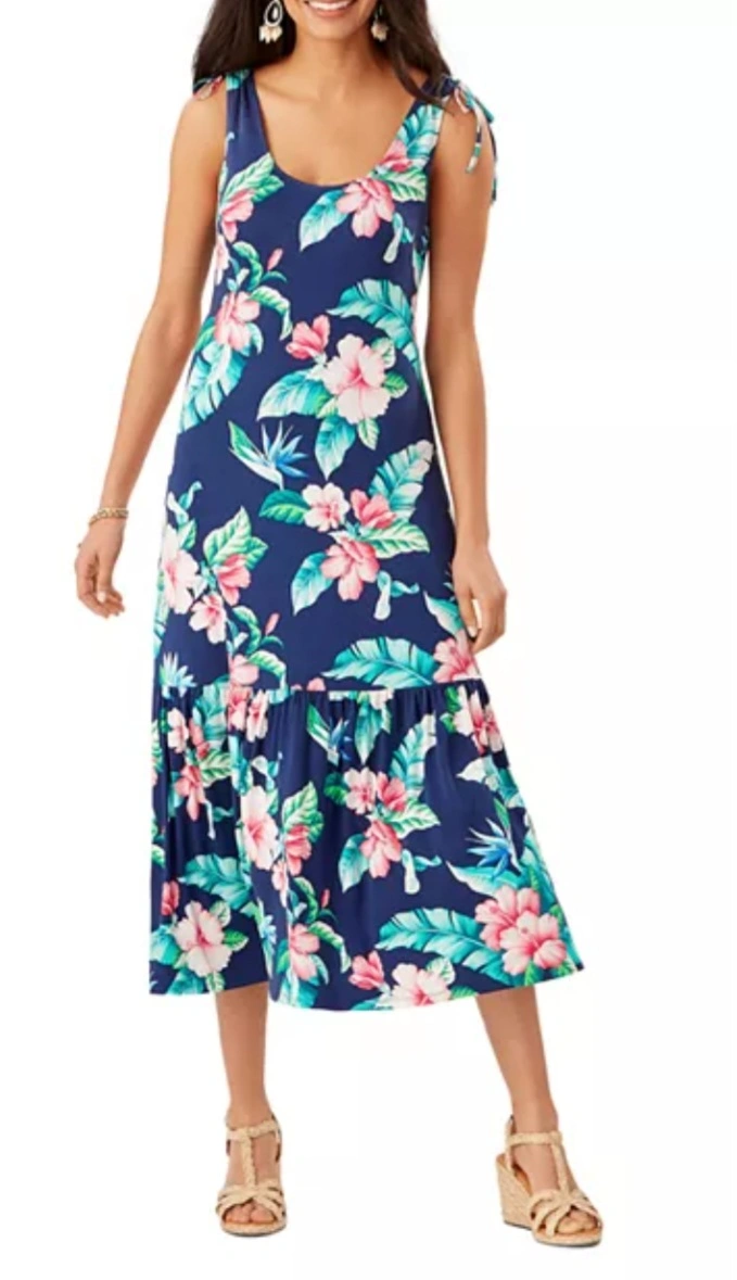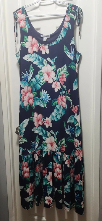 WAS $24. WAS $28. TOMMY BAHAMA Sleeveless MIDI DRESS #L #Large. Navy with Floral Print.