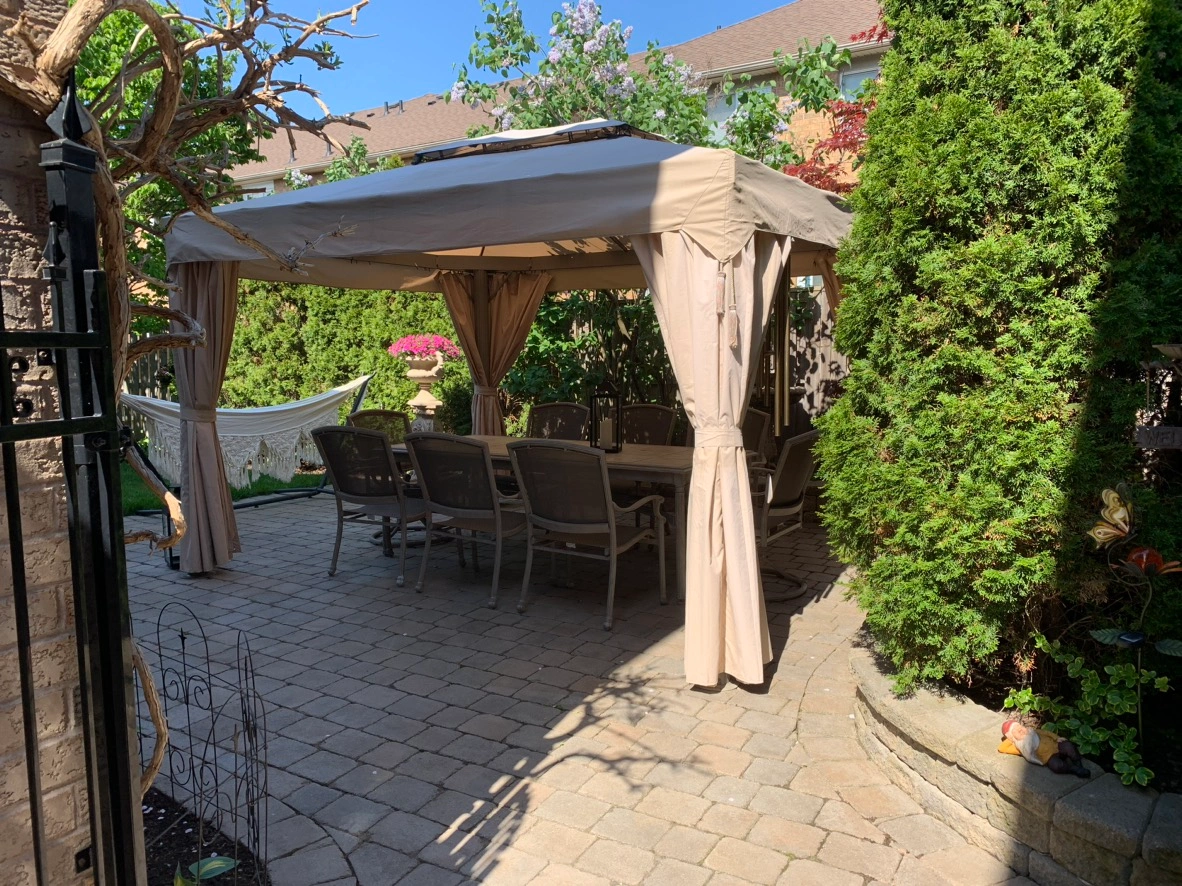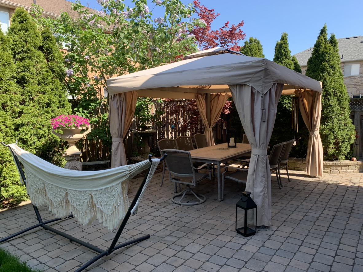 Summer is just around the corner. This Patio Table with 8 Chairs would complement your backyard and parties. Good condition. Does not rust. Umbrella is available for additional price. At this price it won’t last long.