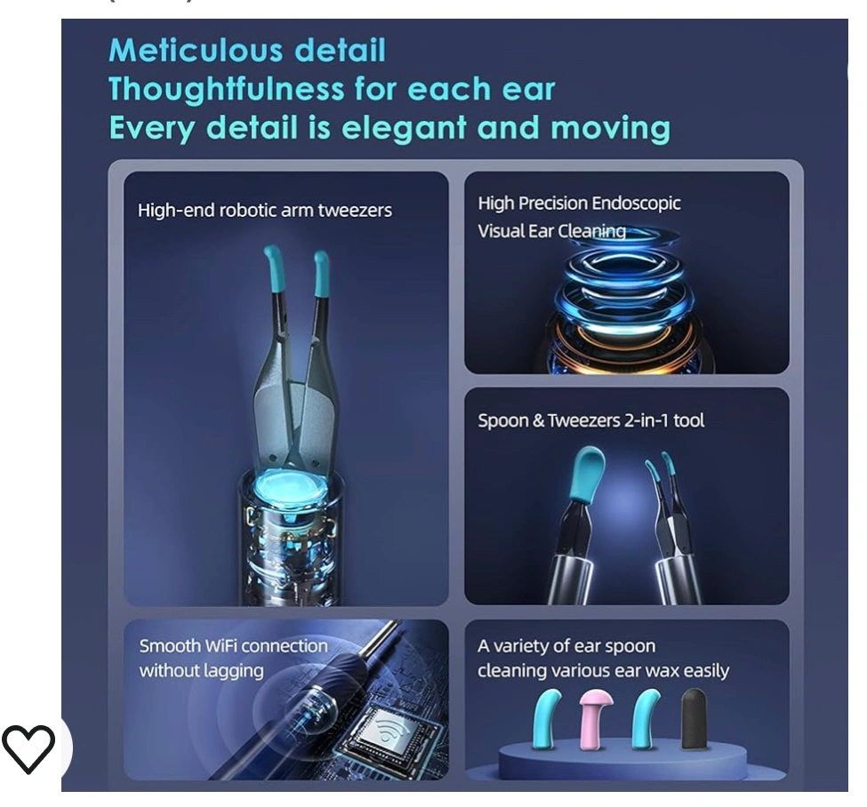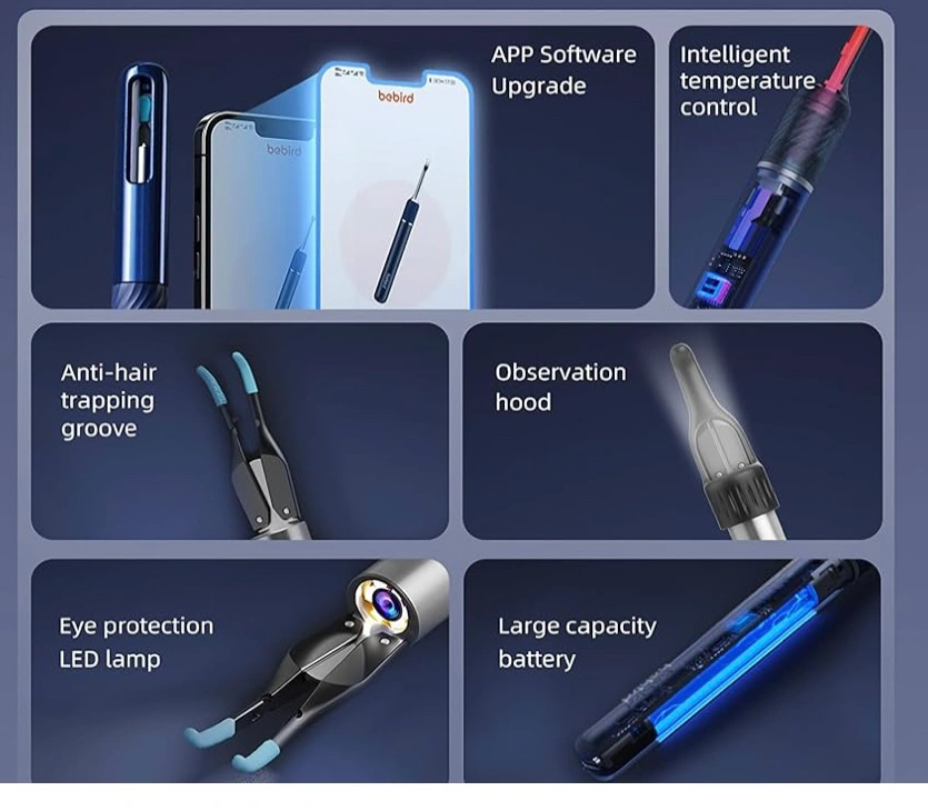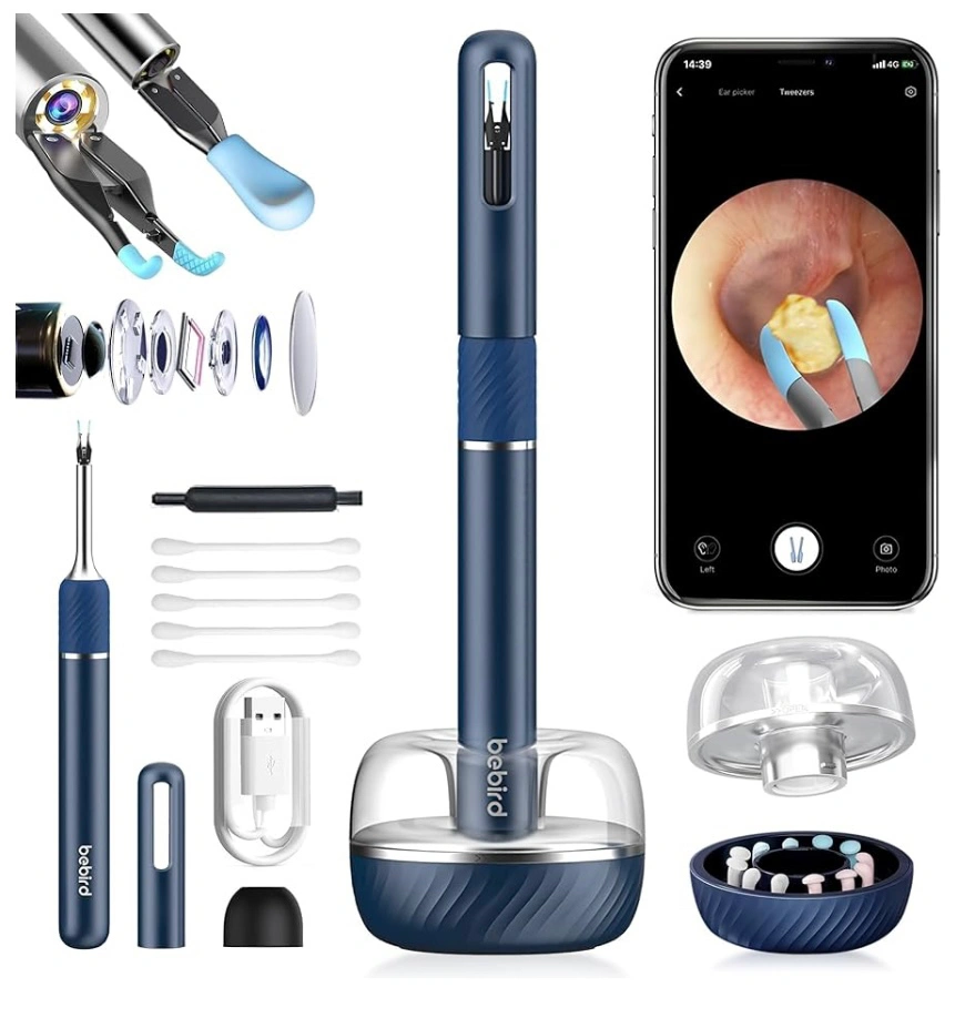 Ear Wax Removal Tool with Ear Camera Otoscope,4-in-1 Ear Canal Cleaner Pick Tweezers with LED Light,Ear Wax Removal Cleaning Kit for Kids Elders/Pets iPhone, iPad & Android (Blue)
