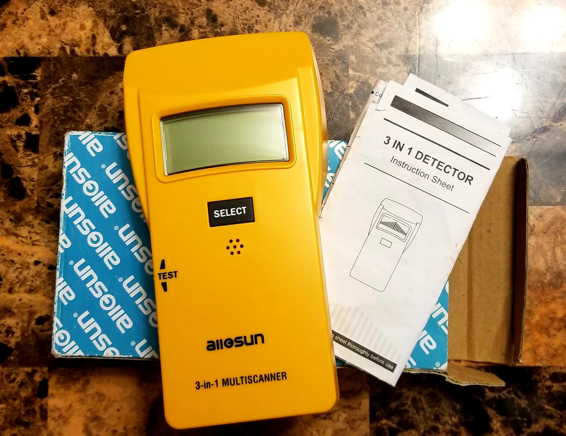 Wood edge finding, stud finder and metal detector. Battery operated (included). Sold as is. Pick up only. Thanks.