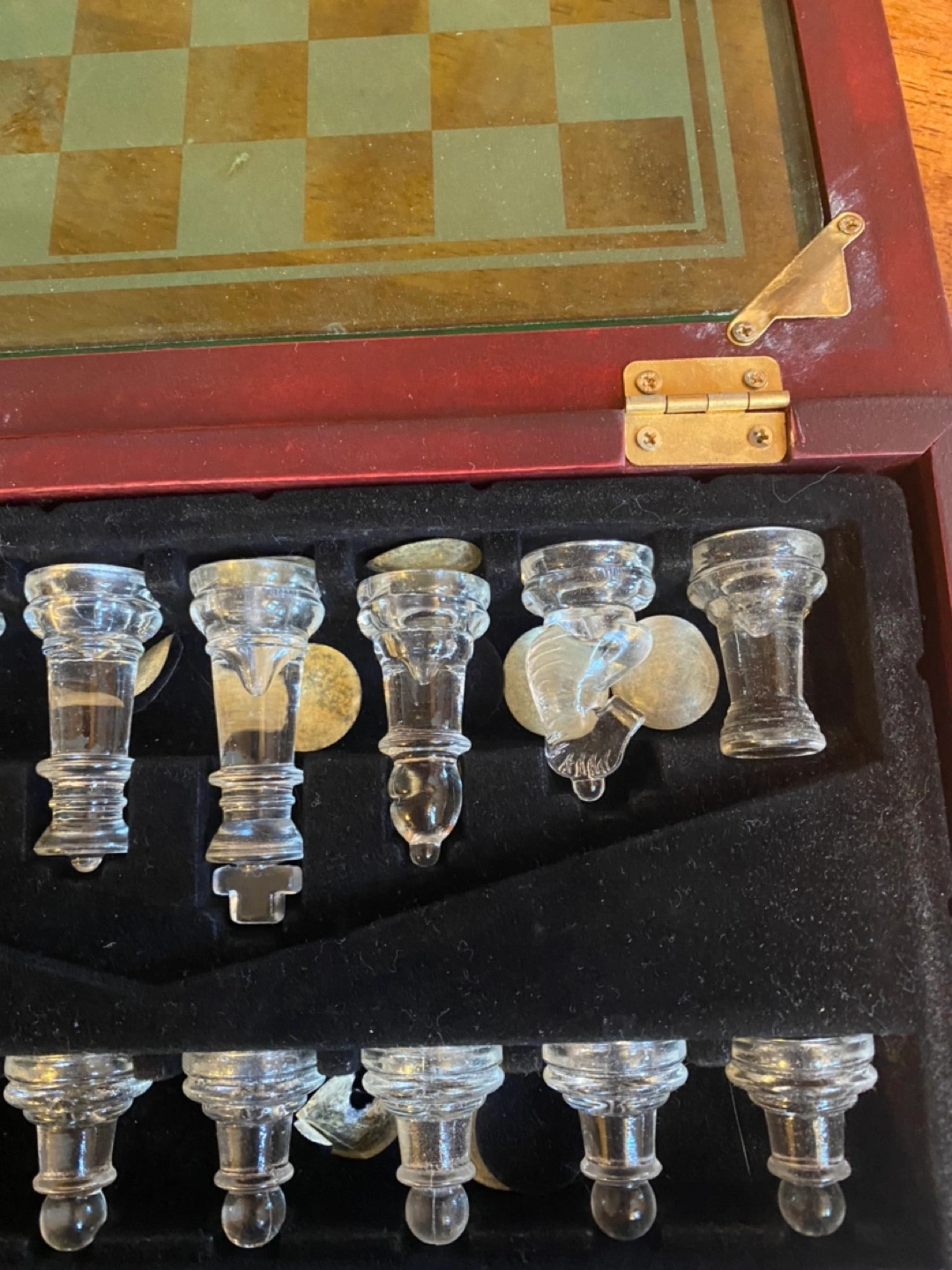 Had it for a while and haven’t used it in a long time. A bit dusty but otherwise fine. Some pieces have the felt coming off the bottom which can easily be replaced or just used without them.