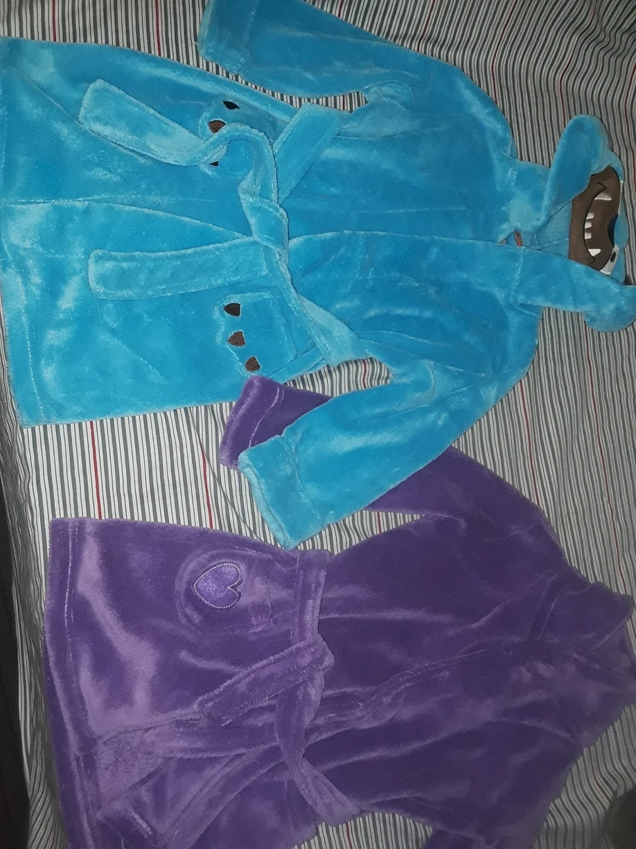 763Used heavy quality robes, no stains ,excellent conditions. Blue one size 4-5 Purple size 5